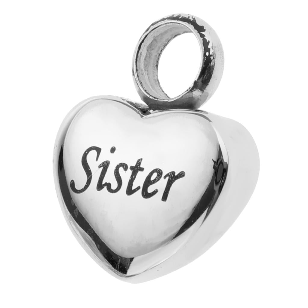 Stainless Steel Love Heart Urn Pendant Memorial Cremation Ash Holder Sister