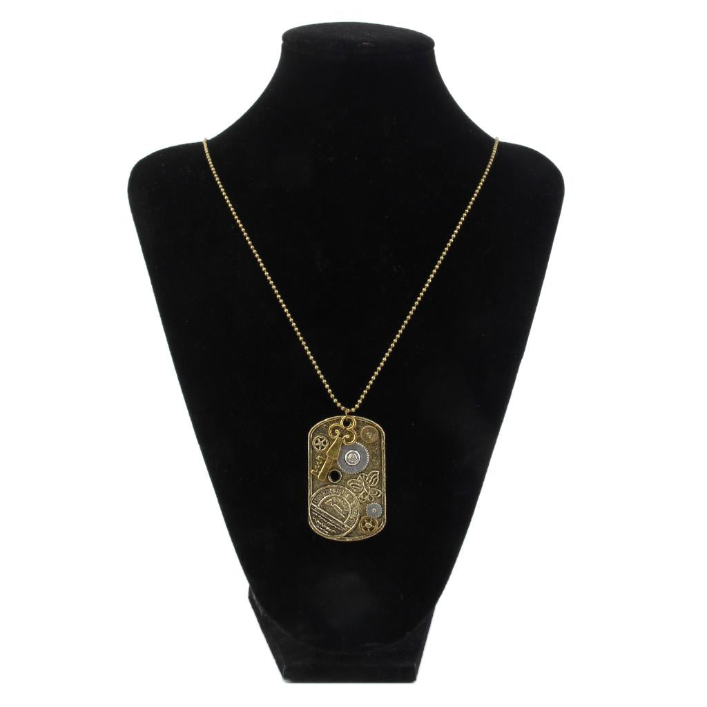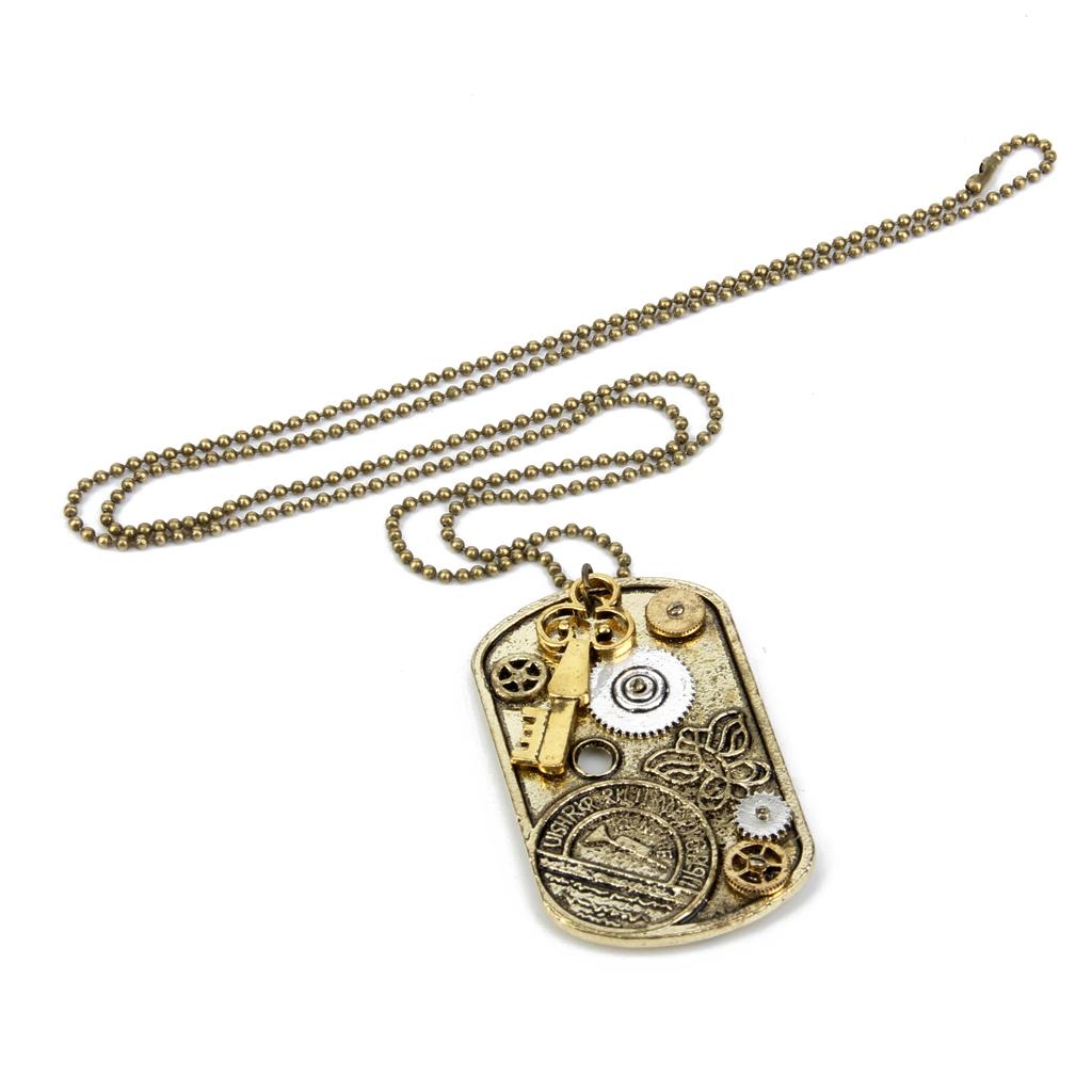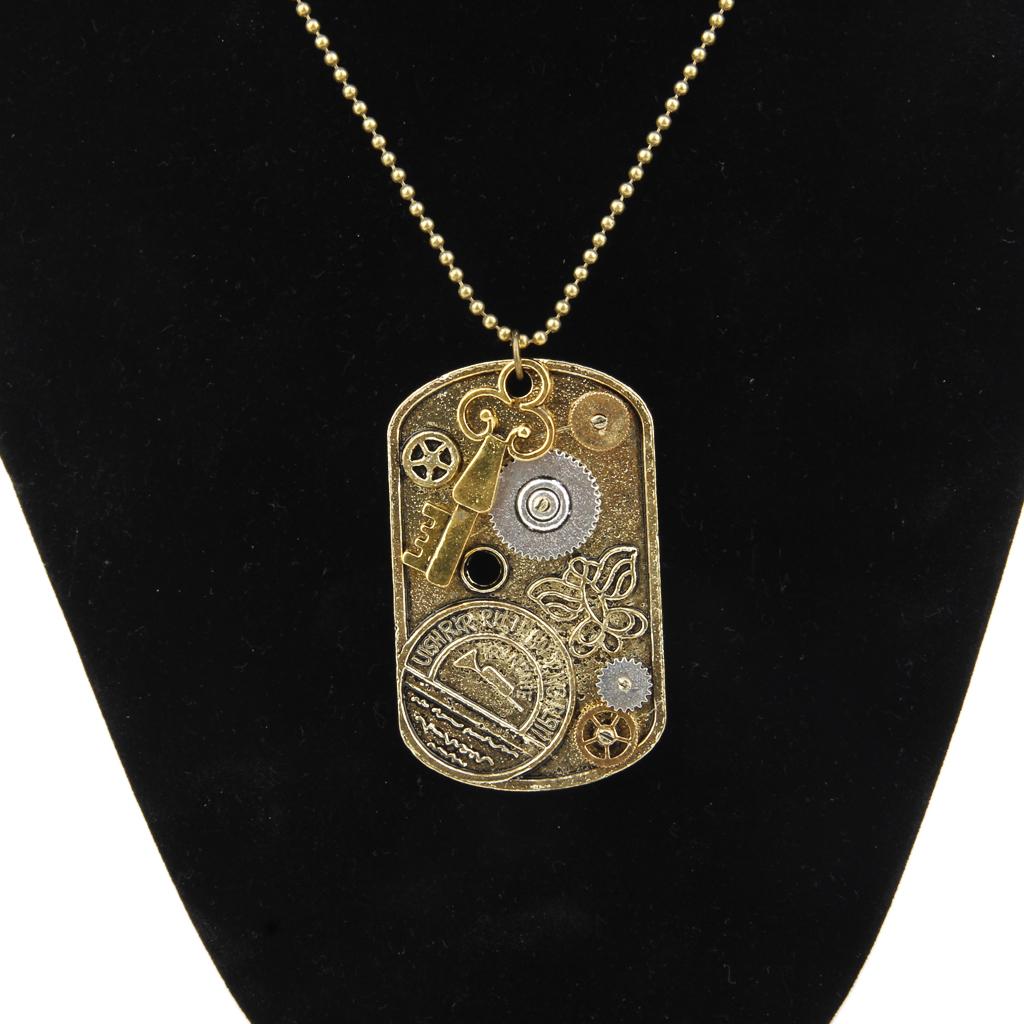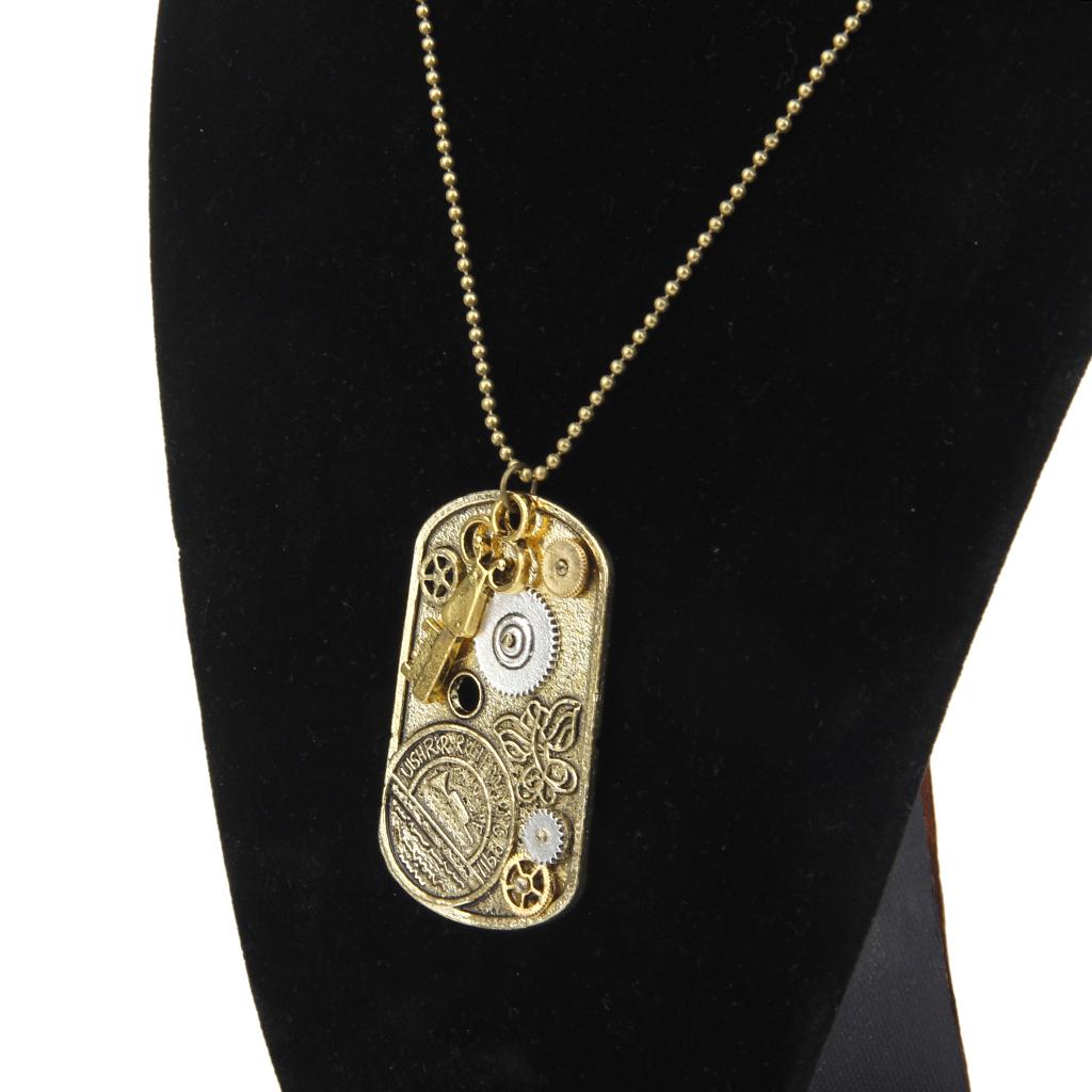 Steampunk Gears Cogs Tag Pendant Necklace Beads Ball Chain Antique Brass