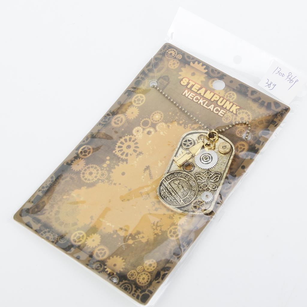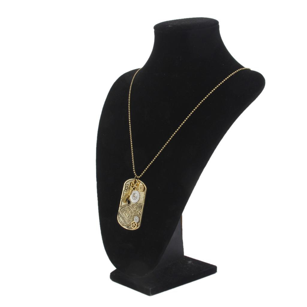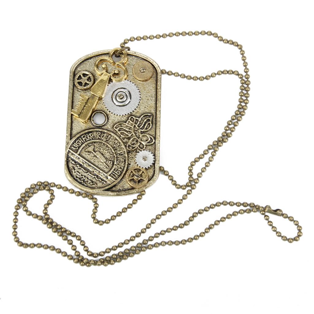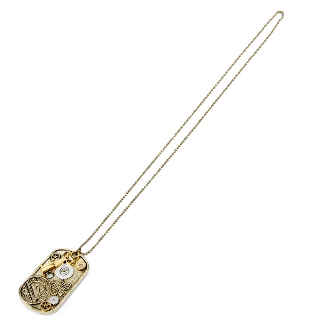 Steampunk Gears Cogs Tag Pendant Necklace Beads Ball Chain Antique Brass