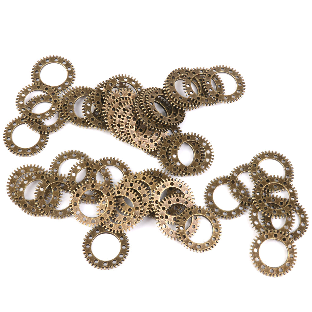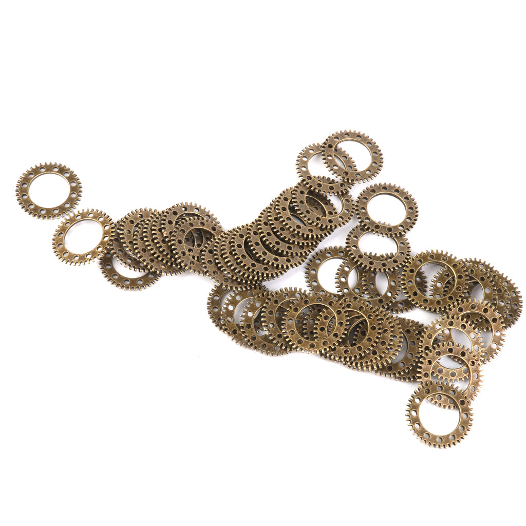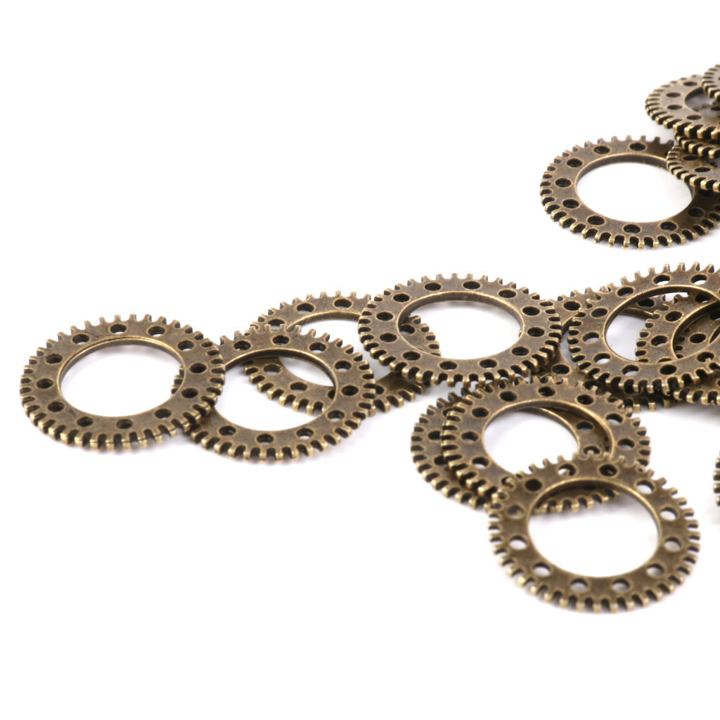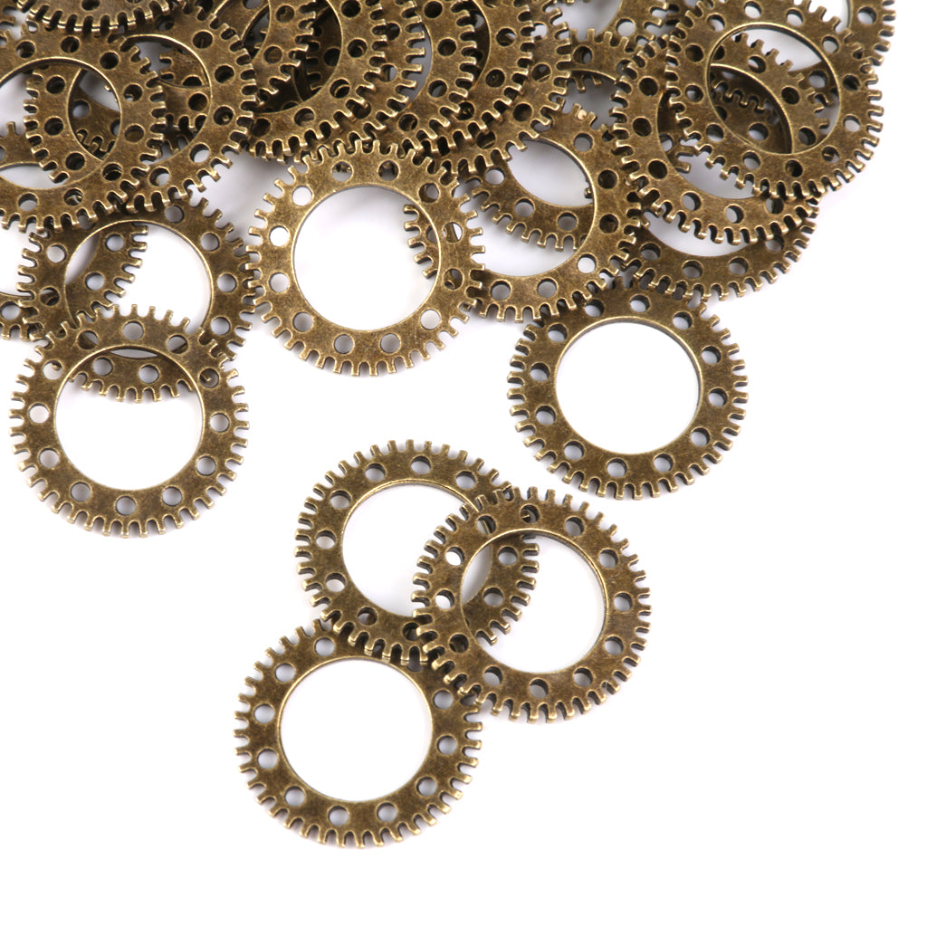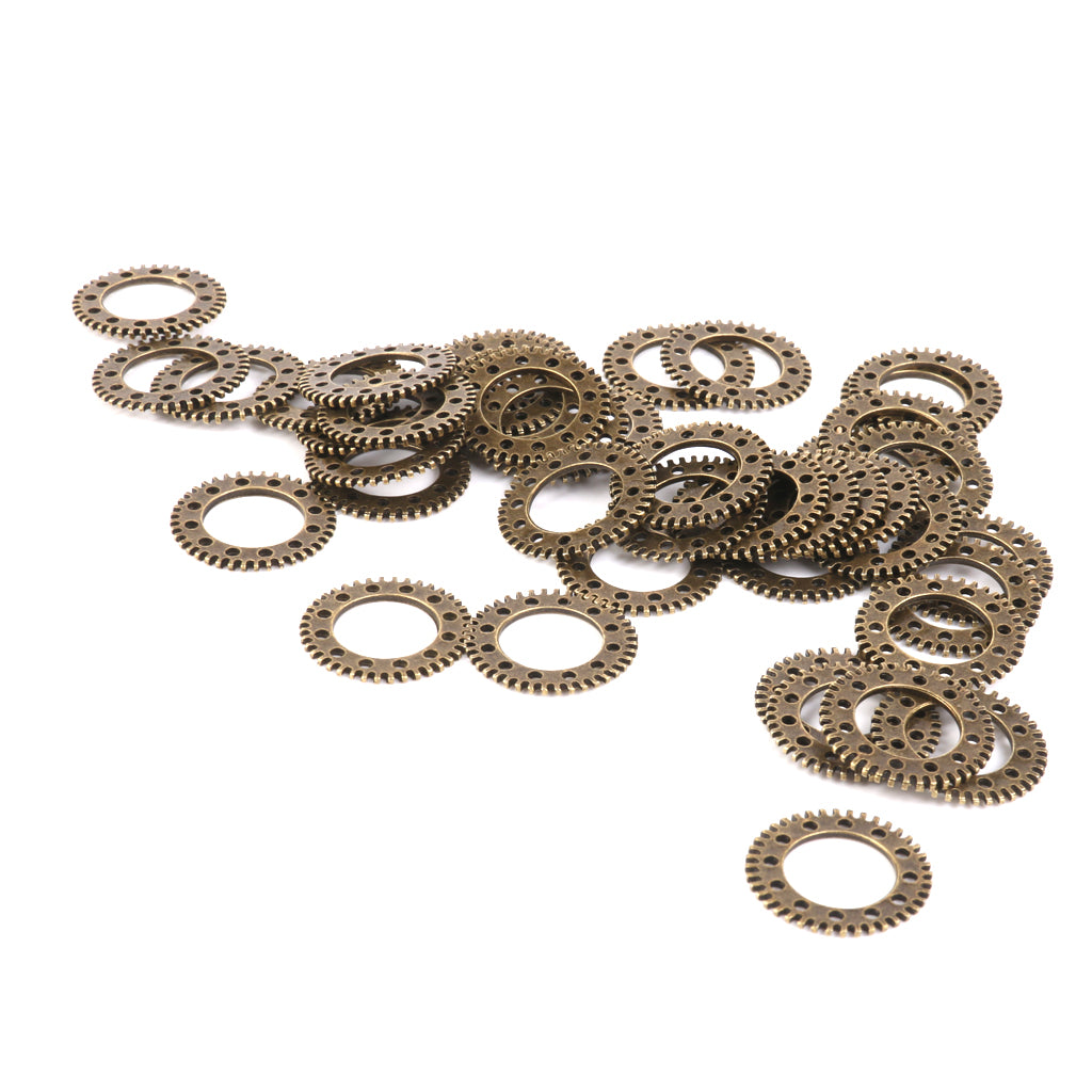 Vintage Punk Alloy Hollow Gear Wheel Pendant Charms 2CM 50PCS Antique Bronze
