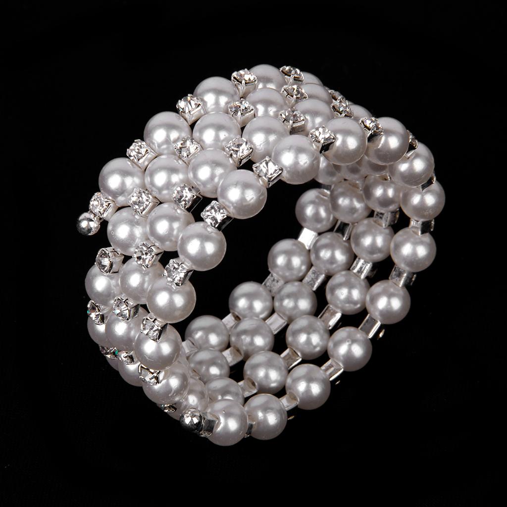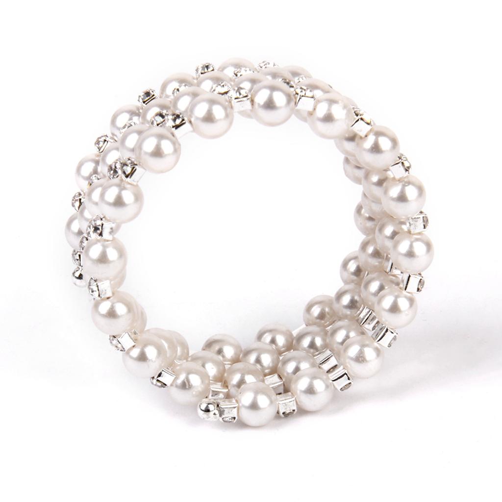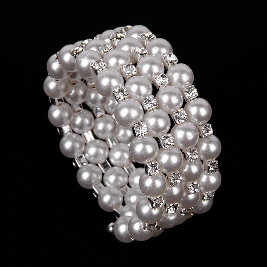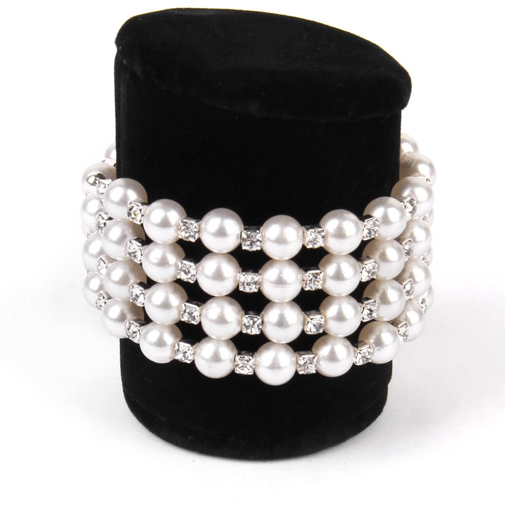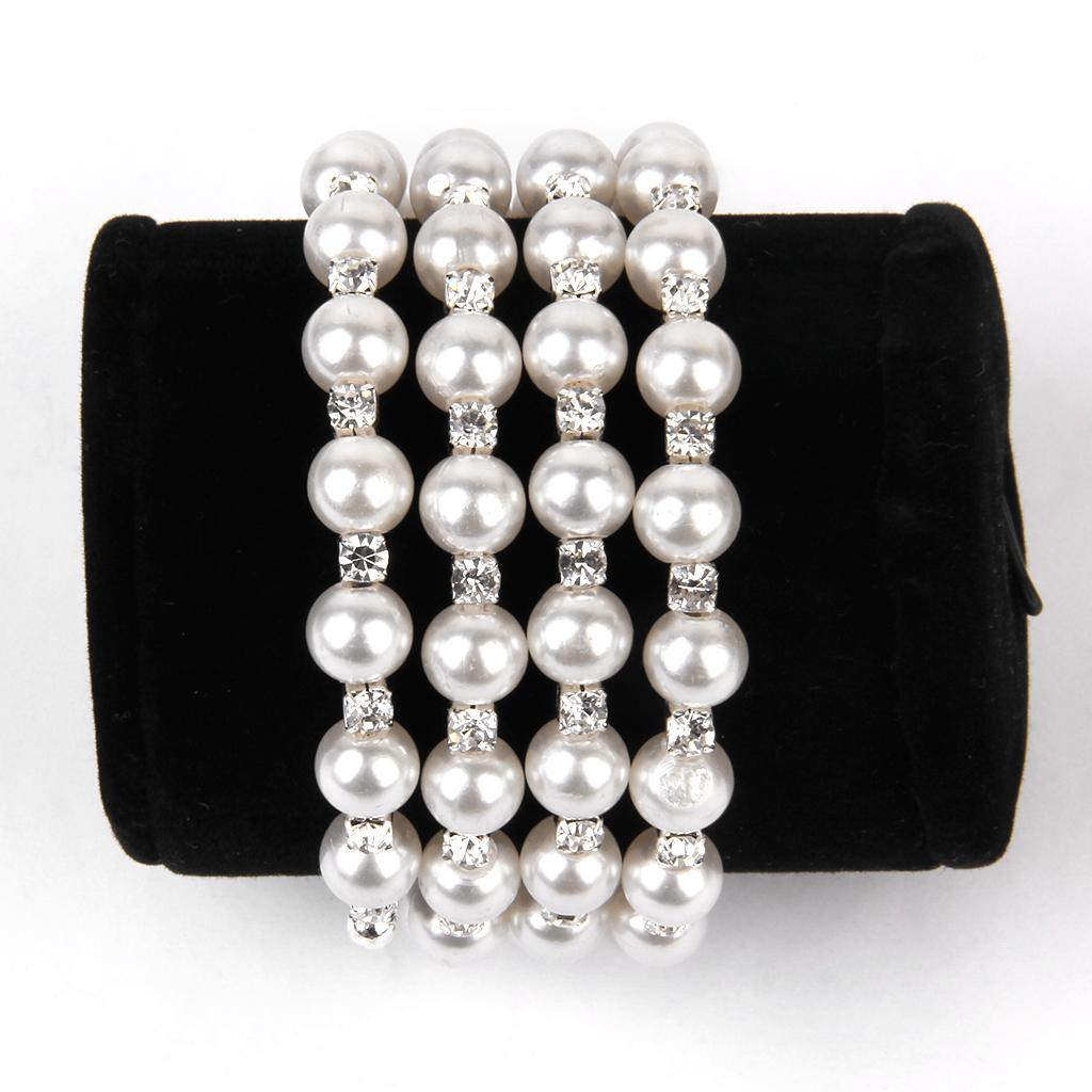 • 4 rows of elastic bracelet with shiny faux pearl rhinestone