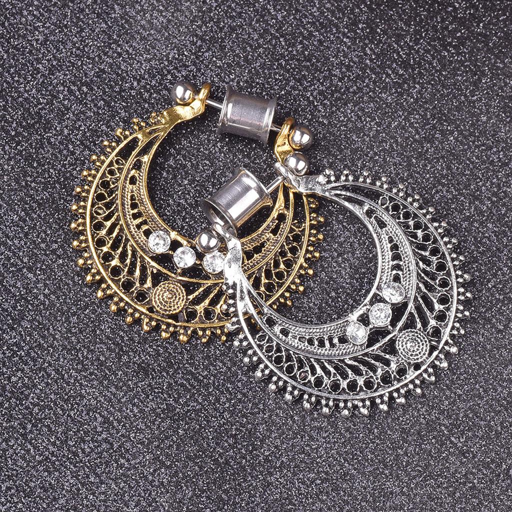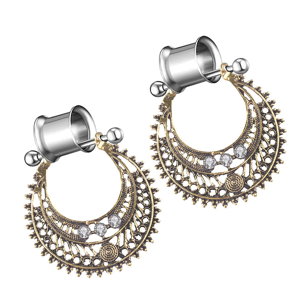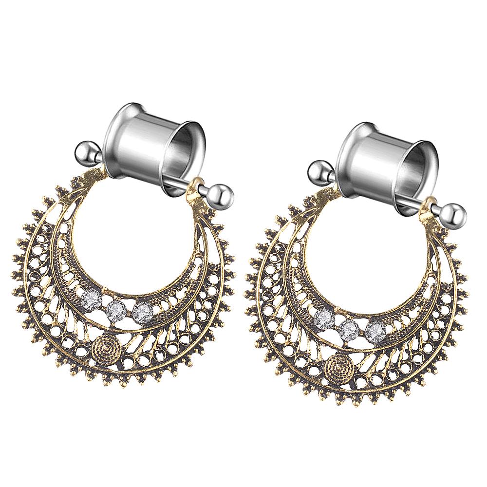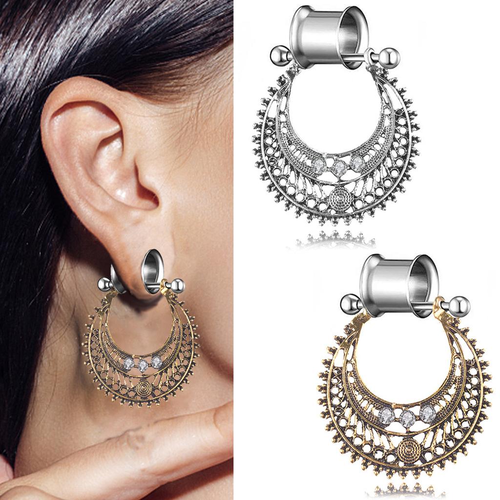 Women Bohemia Ethnic Ear Plug Expander Earring Hollow Dangle Earrings 6mm Antique Gold 10mm