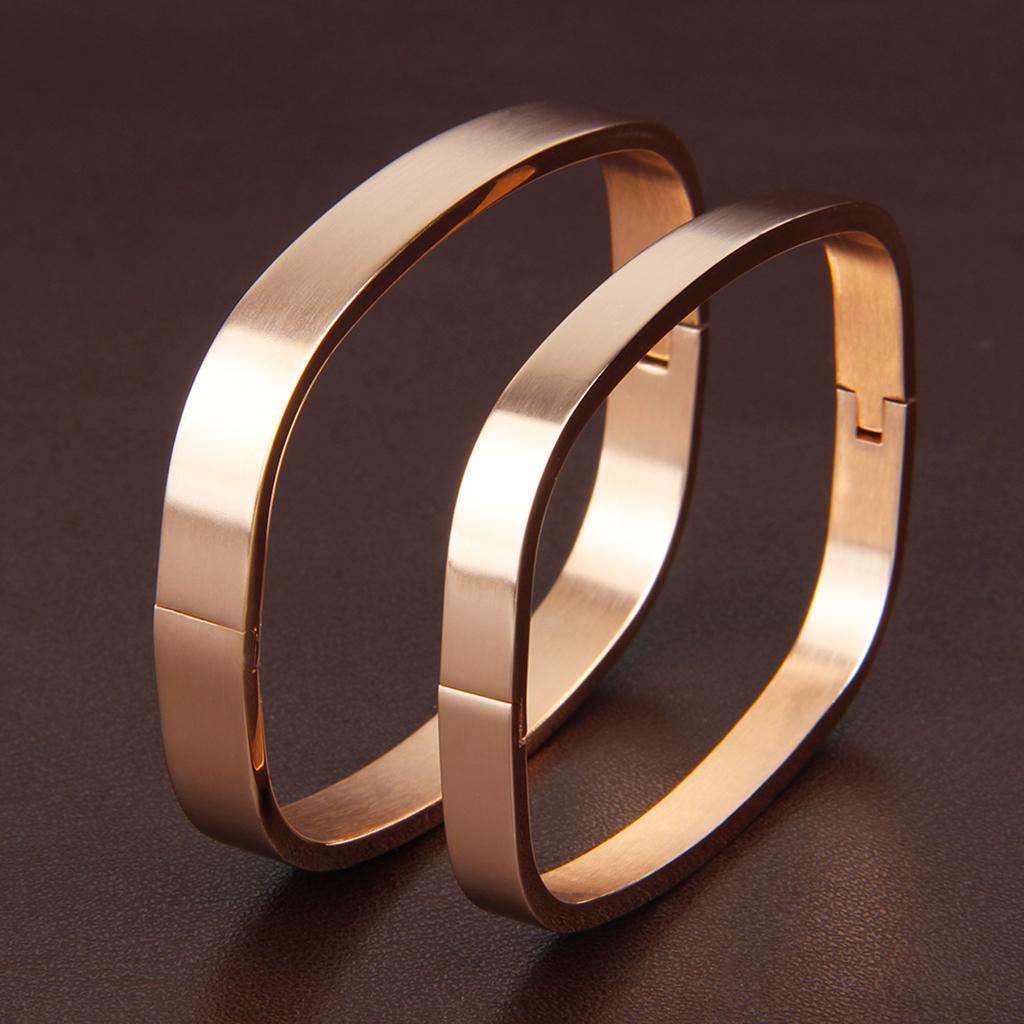 Womens Mens Stainless Steel Brecelet Polished Cuff Bangle Rose Gold 6mm
