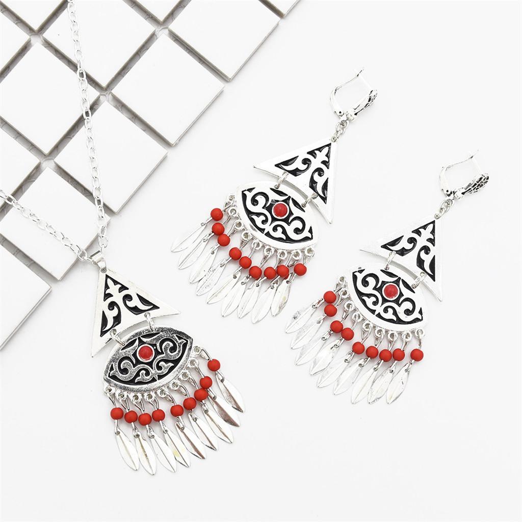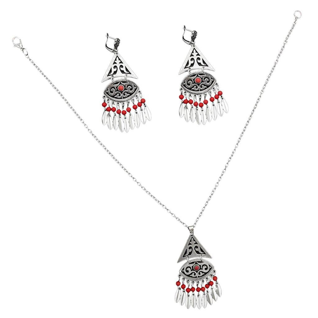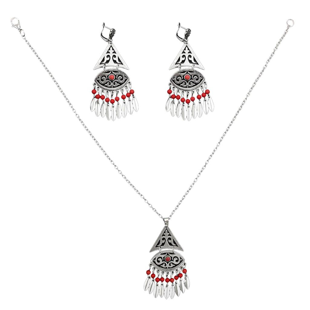 Women's Vintage Bohemian Style Tassel Hook Earrings and Necklace Jewelry Set 74RE