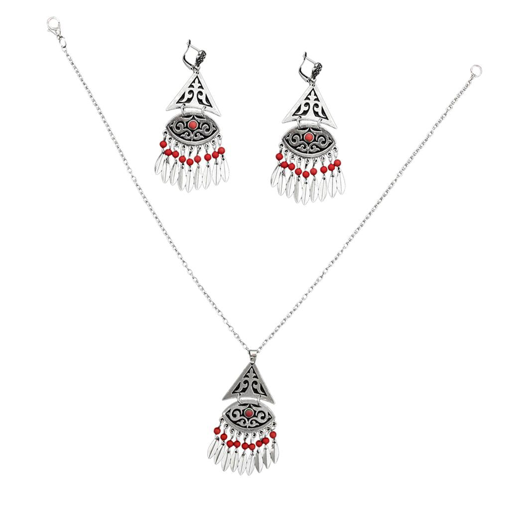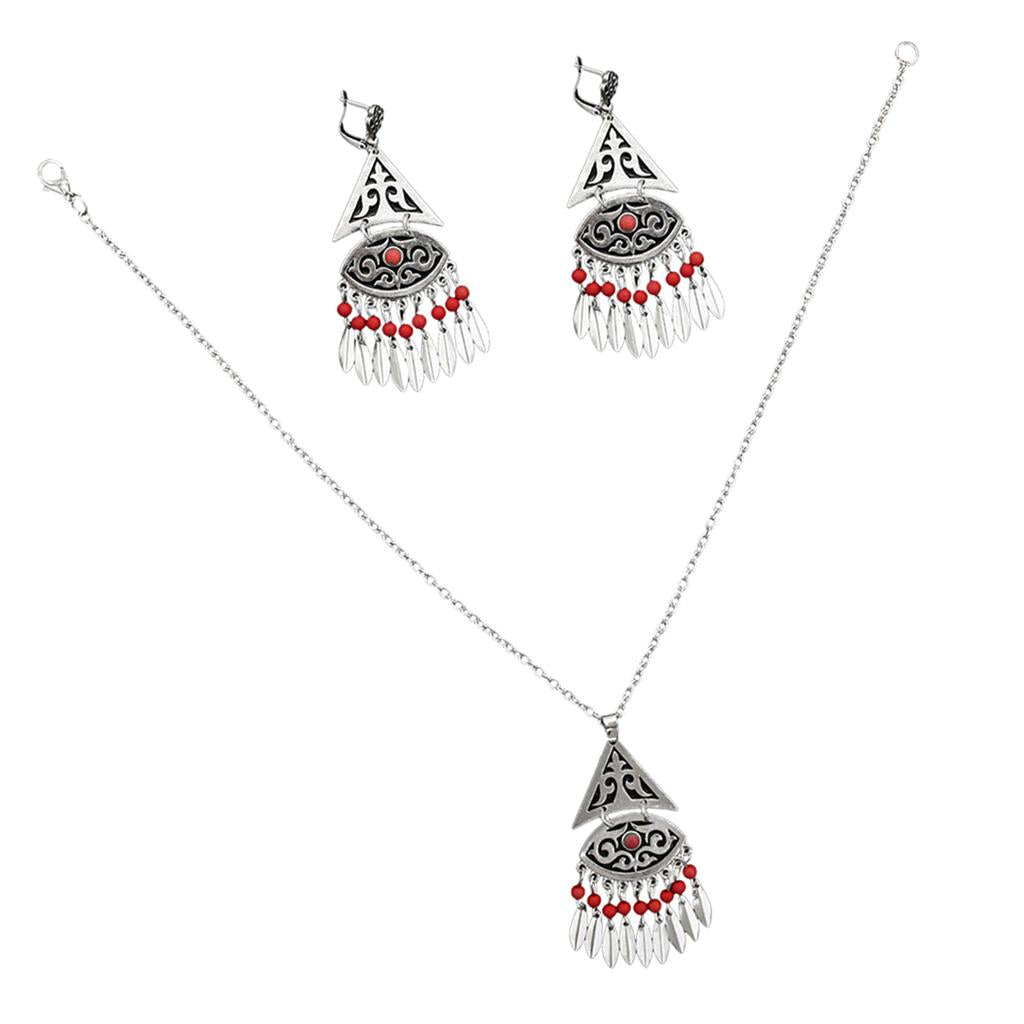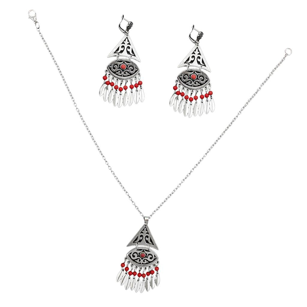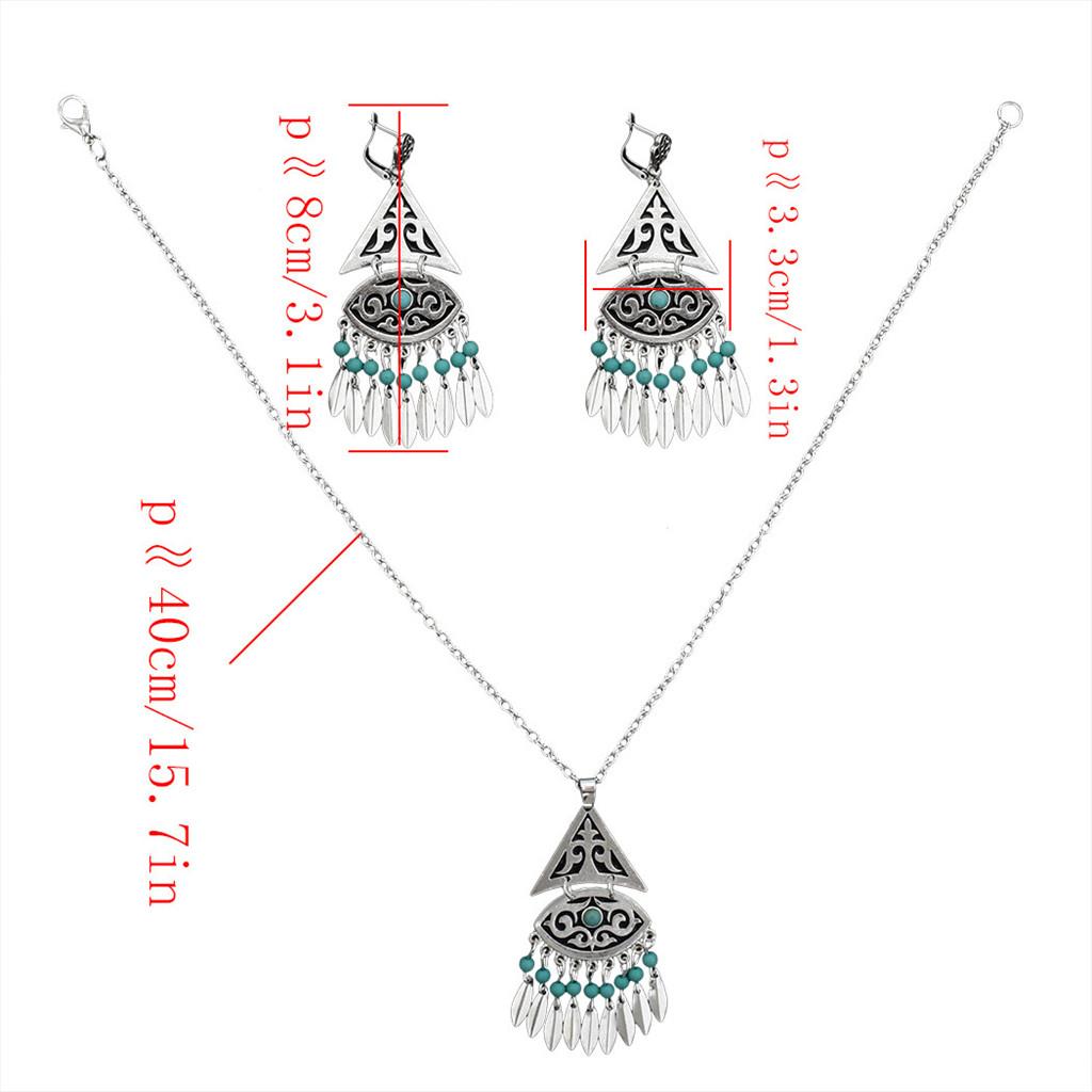 Women's Vintage Bohemian Style Tassel Hook Earrings and Necklace Jewelry Set 74RE