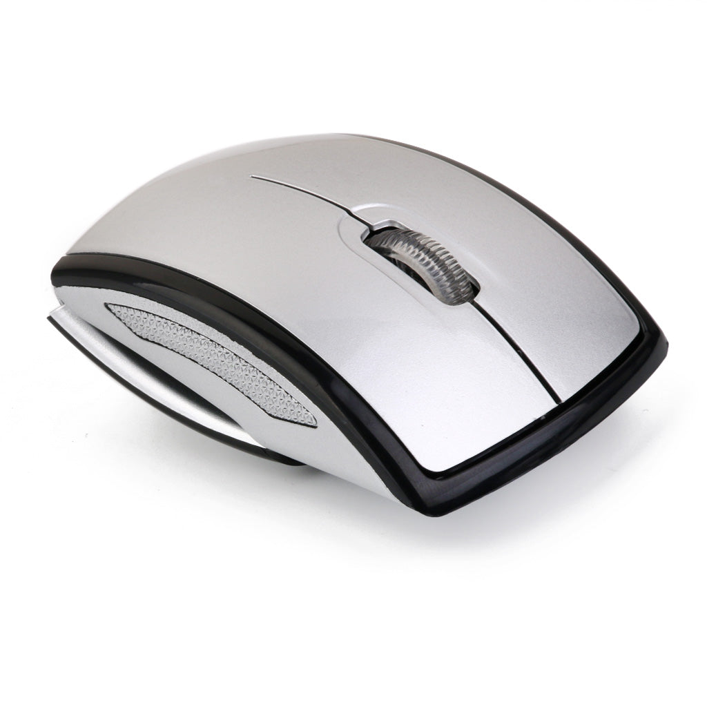 Ergonomic Curved Wireless 2.4 GHz Optical Slim Mouse with DPI Switch Silver