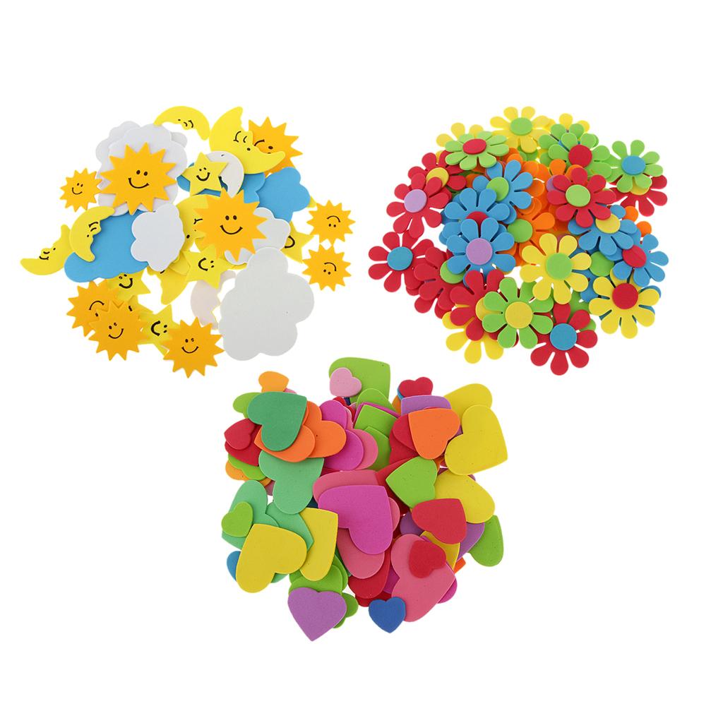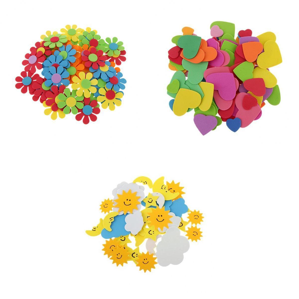 180 Pieces Mixed Foam Heart Flower Sun Clouds Shape for DIY Kid Craft Home Decoration