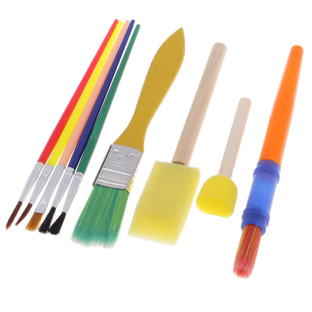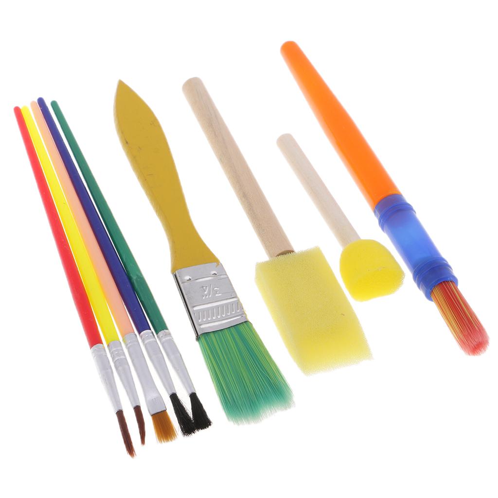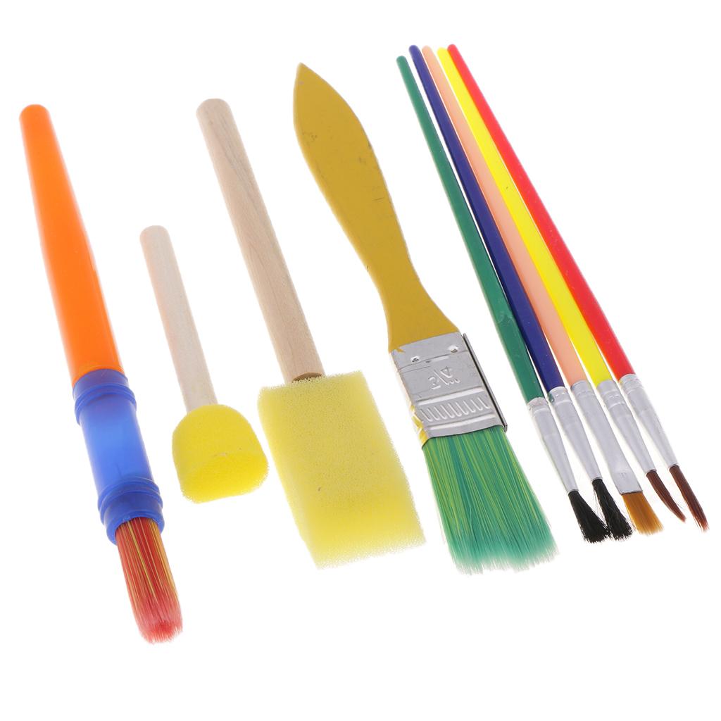 1 Set of 9 pieces sponge paint brushes and hair brushes