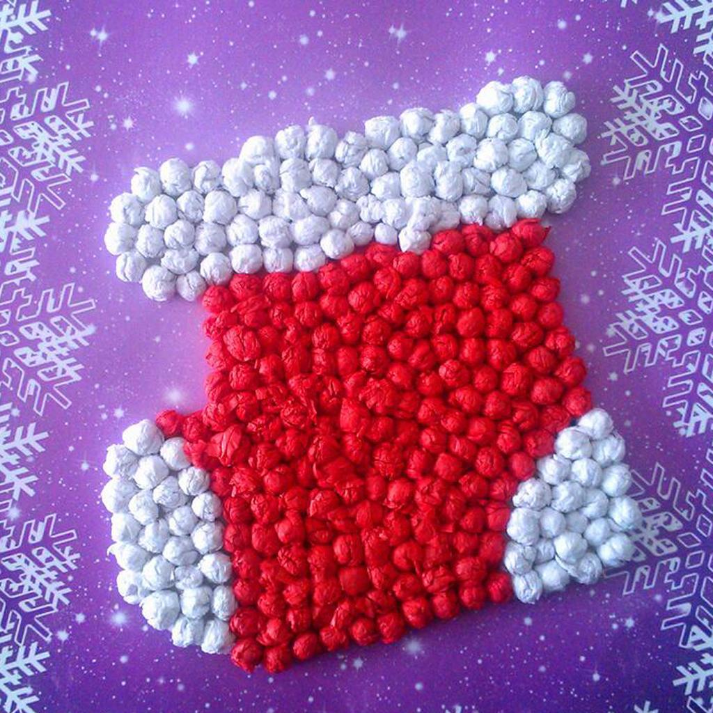 Step 2: Crumple the paper into small paper balls, then stick up the paper balls on the background board as per color. Do not forget the toy eyes!