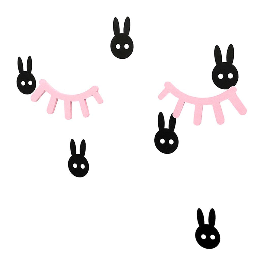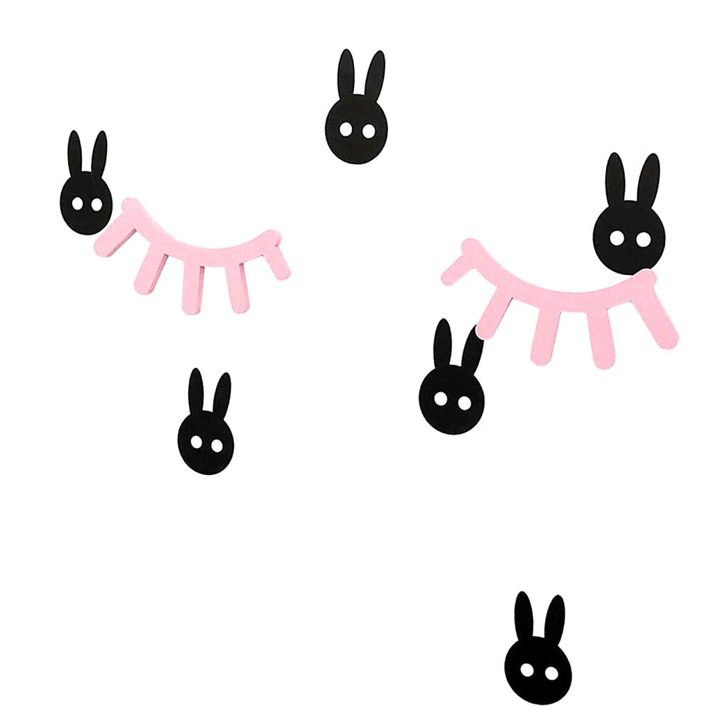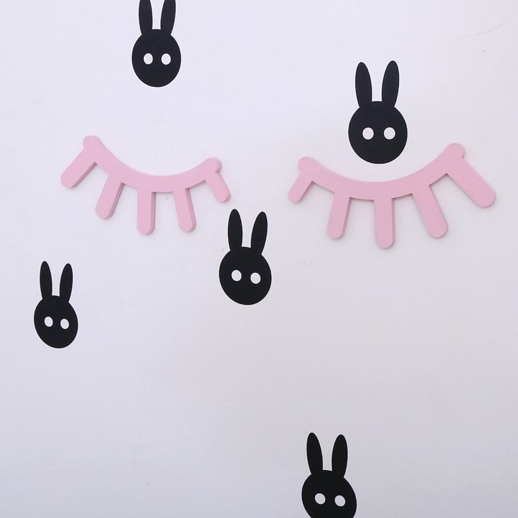 3D Wood Eyelashes Wall Decal Bedroom Sticker for Kids Baby Room Pink