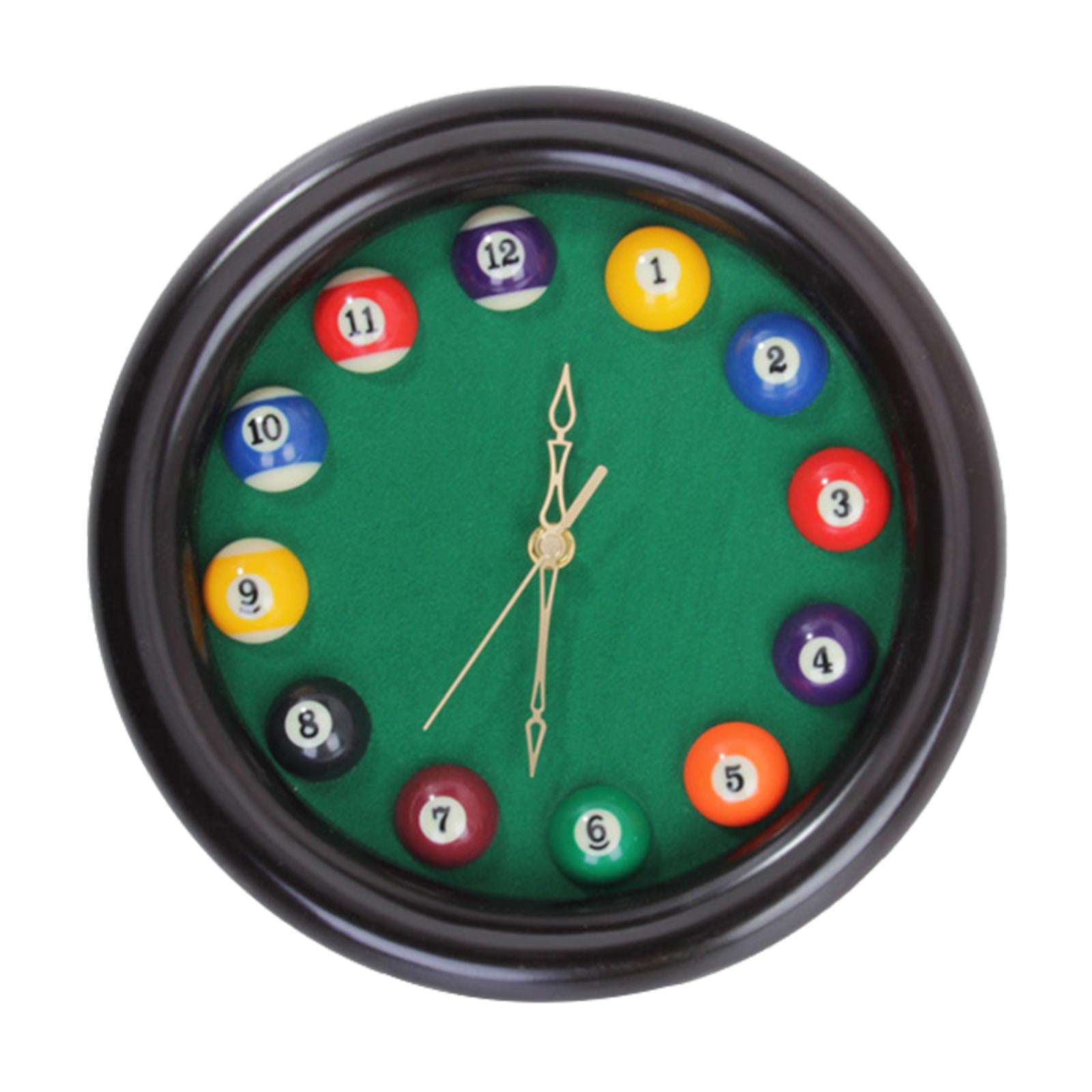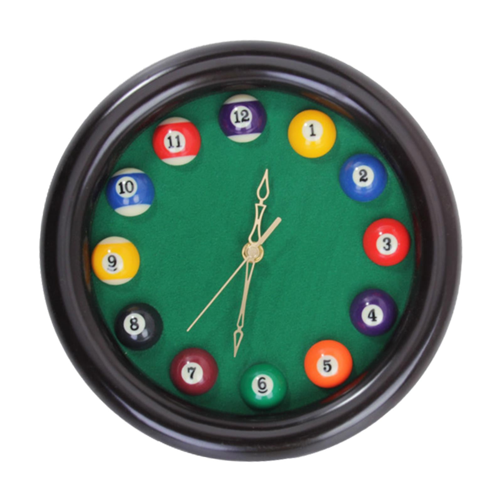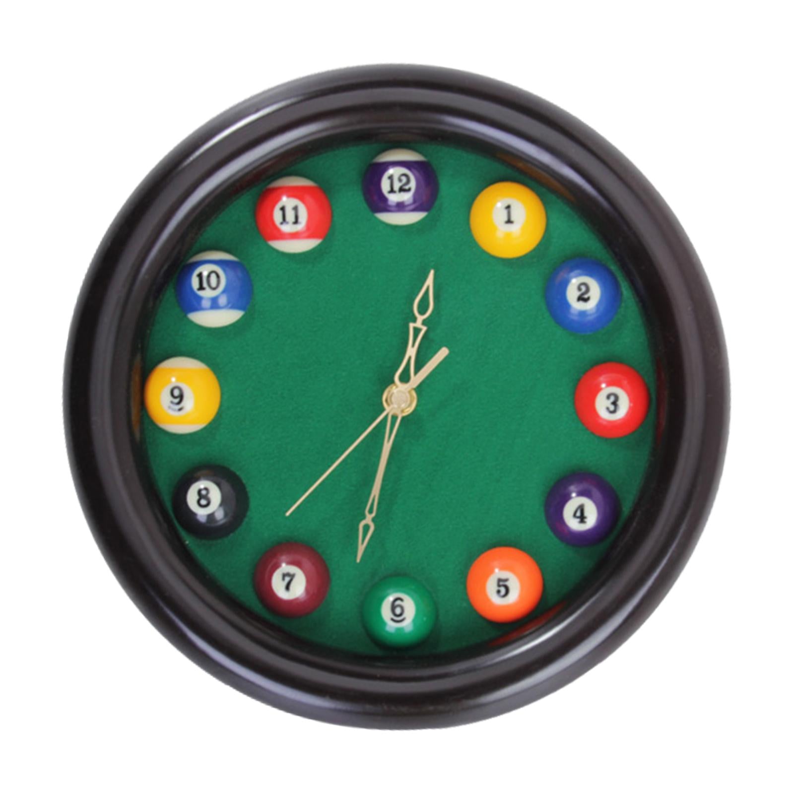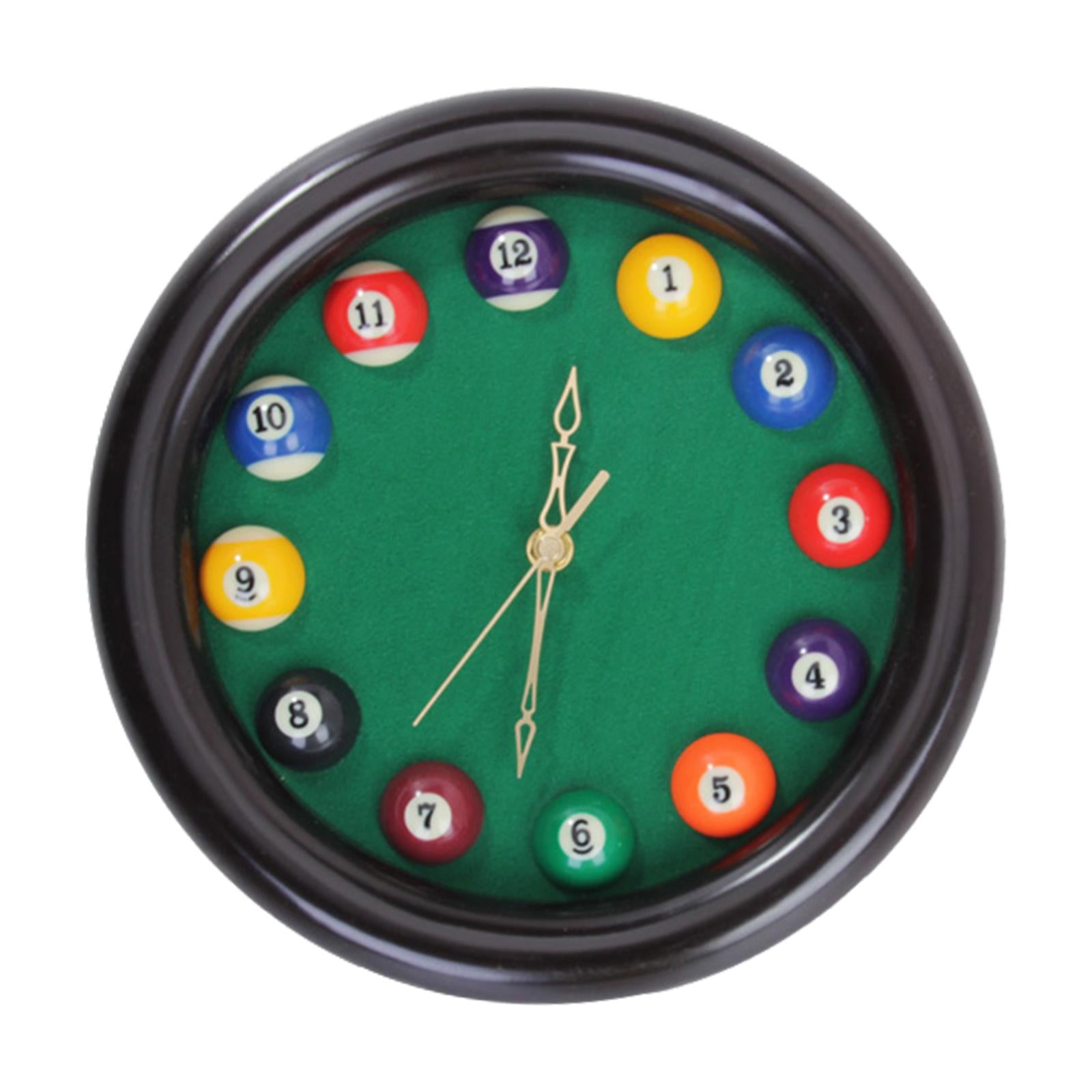 • A circular wall clock with mini billiards ball as its number and billiards cloth as its dial