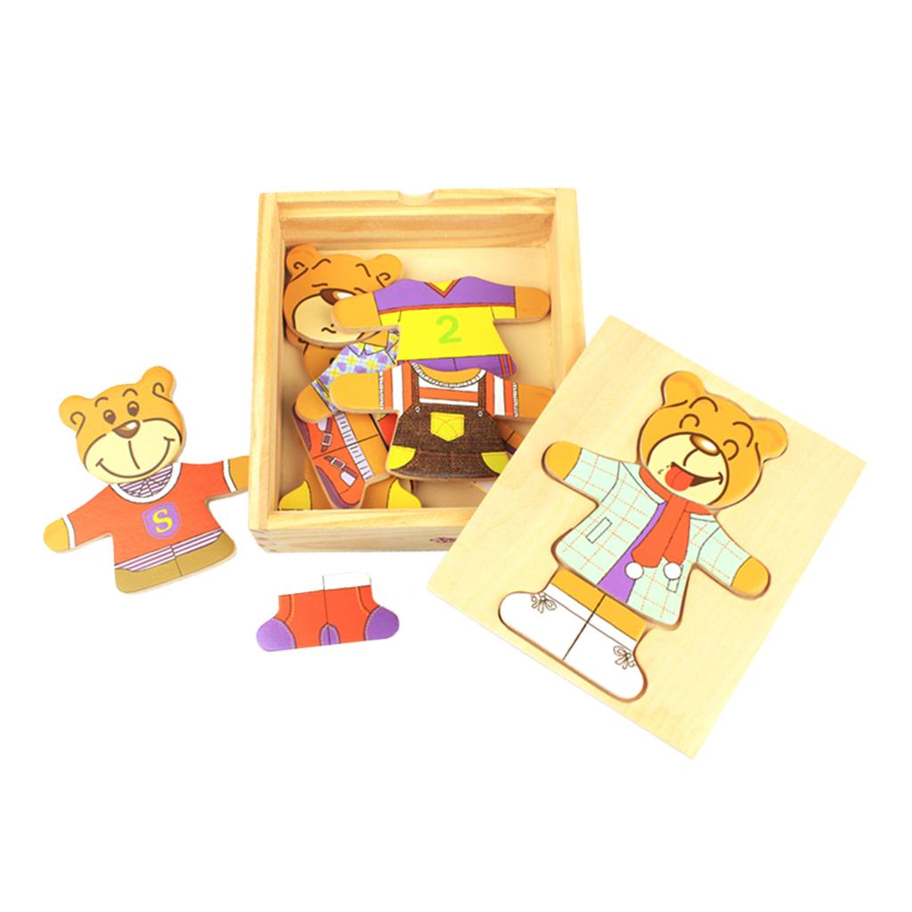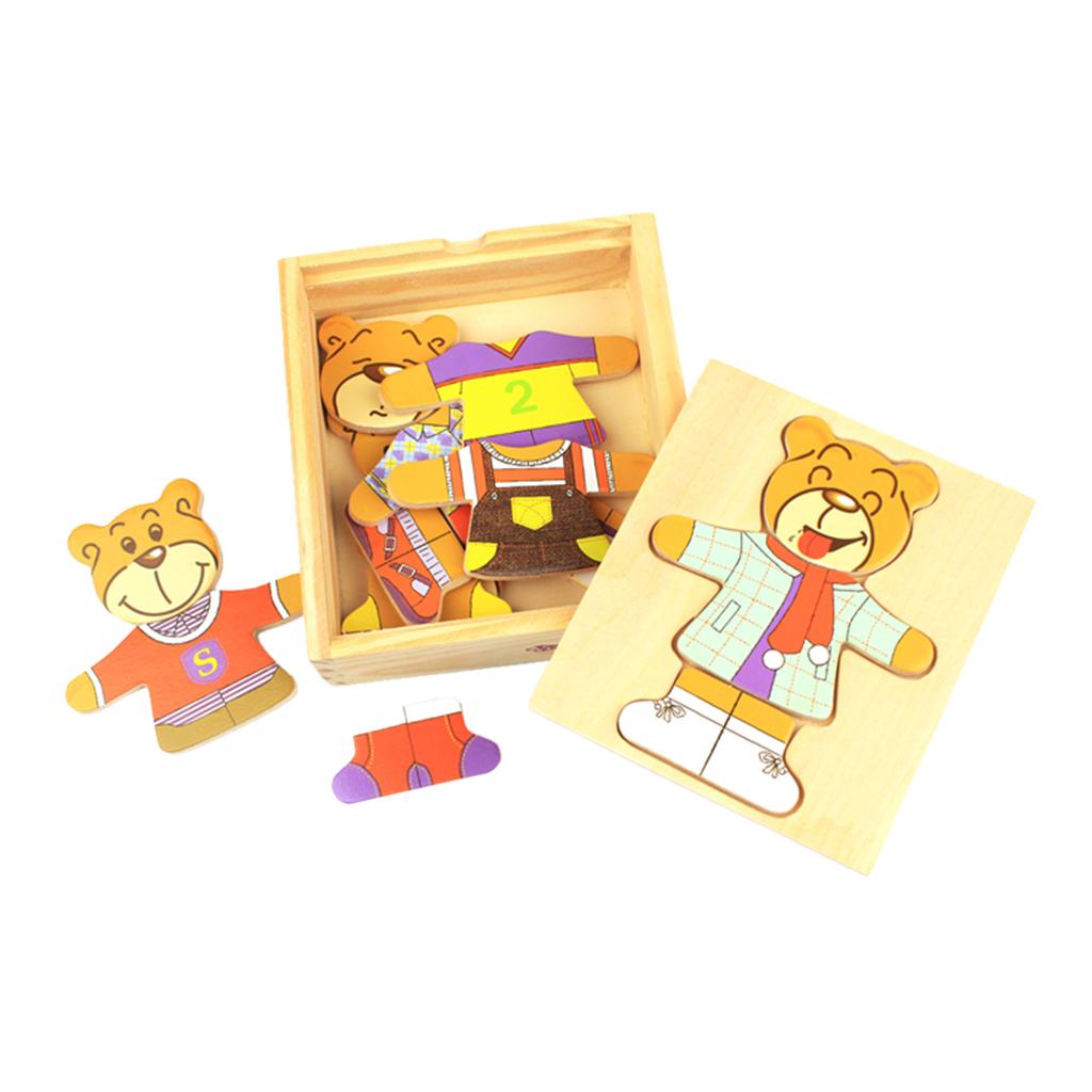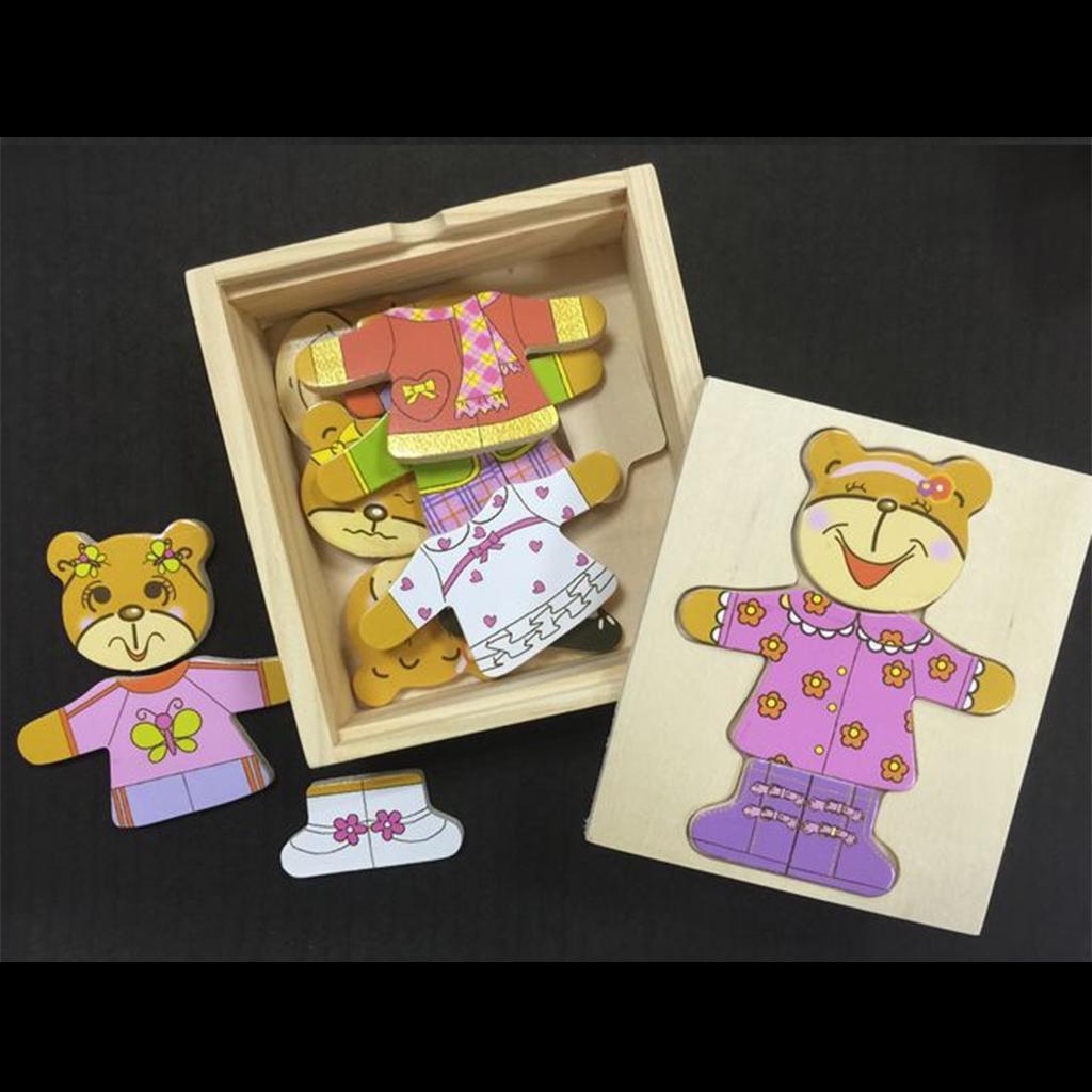 Early childhood educational toy - puzzle blocks - bears dressed up clothes.