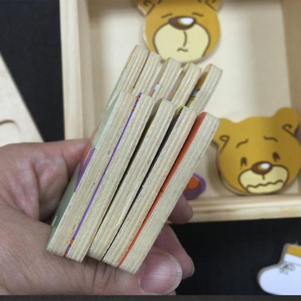 Each package include 5 set of bear clothes (head, upper body, lower body) and a wood puzzle clapboard model. Comes with a wood box for storage.