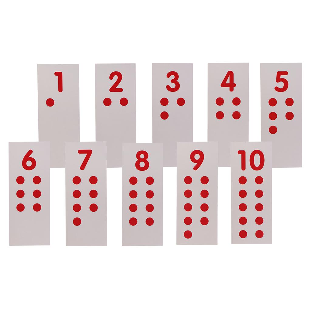 A set 1-10 number cards, with 1-10 numbers printed and 1-10 round dot