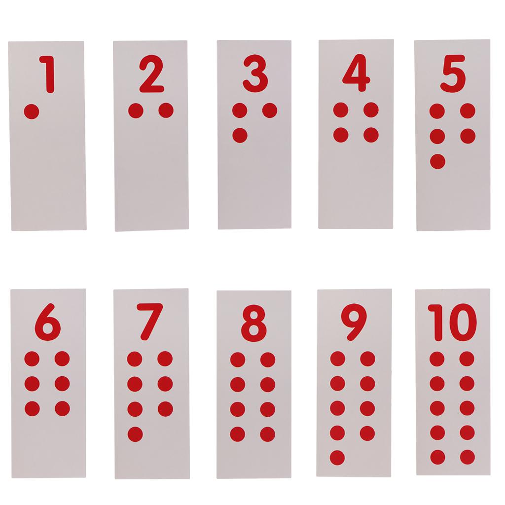 A set 1-10 number cards, with 1-10 numbers printed and 1-10 round dot