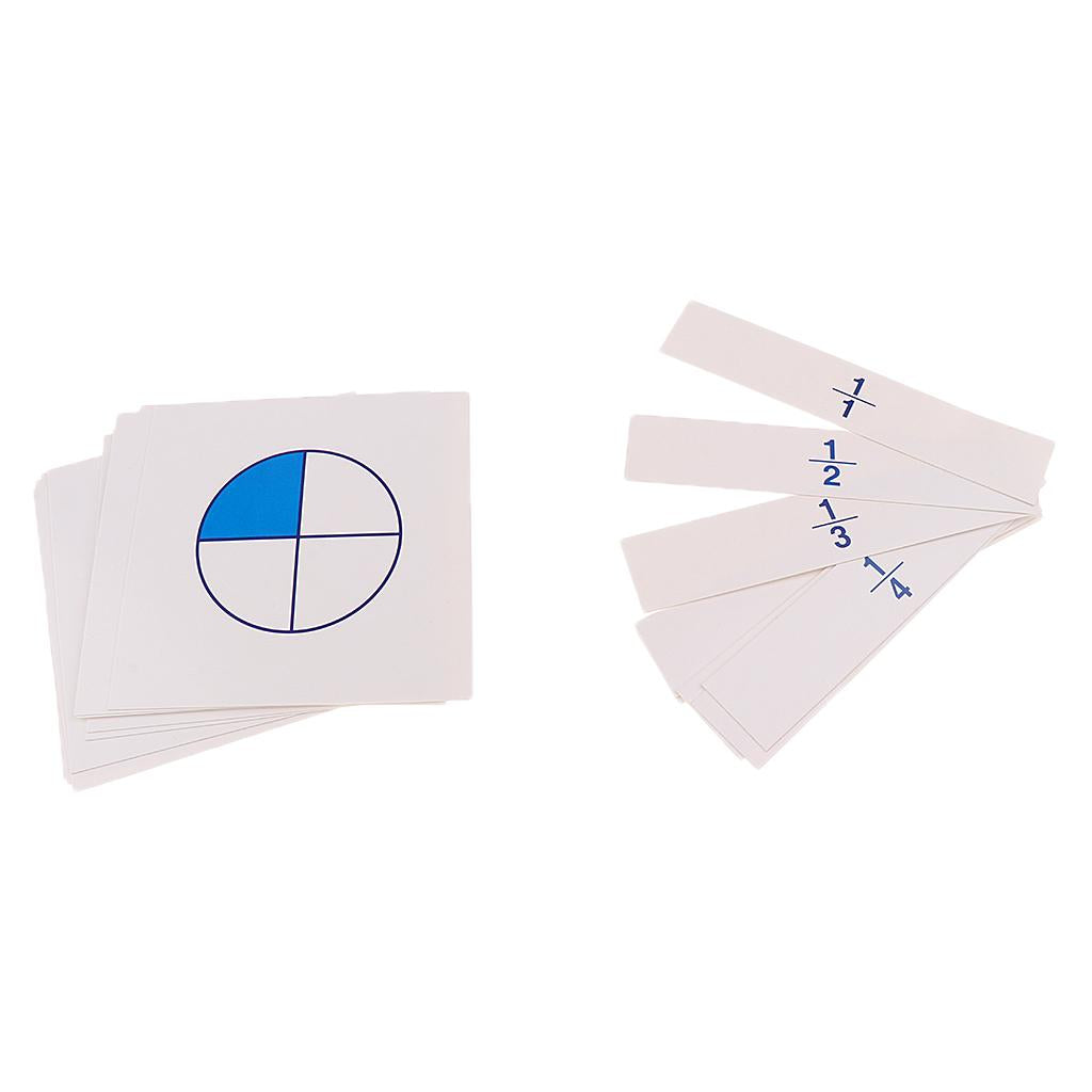 Wooden Baord contains 5 fraction groups, 1/2, 1/3, 1/4, 1/6, 1/8, There are 5 fraction groups cards, 1/2, 1/3, 1/4, 1/1
