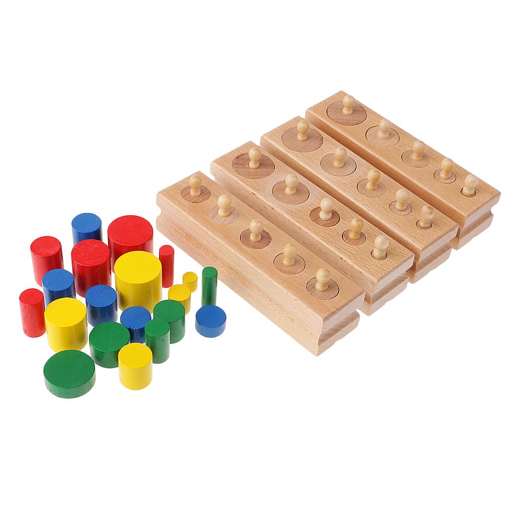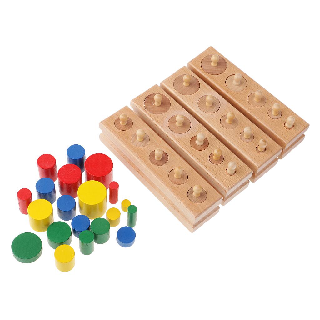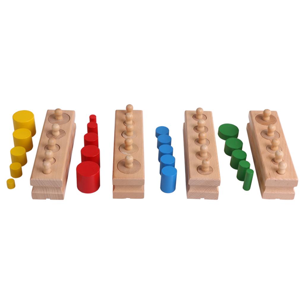 Montessori Childhood Early Developing Wooden Toy - 4 Blocks Socket Cylinders