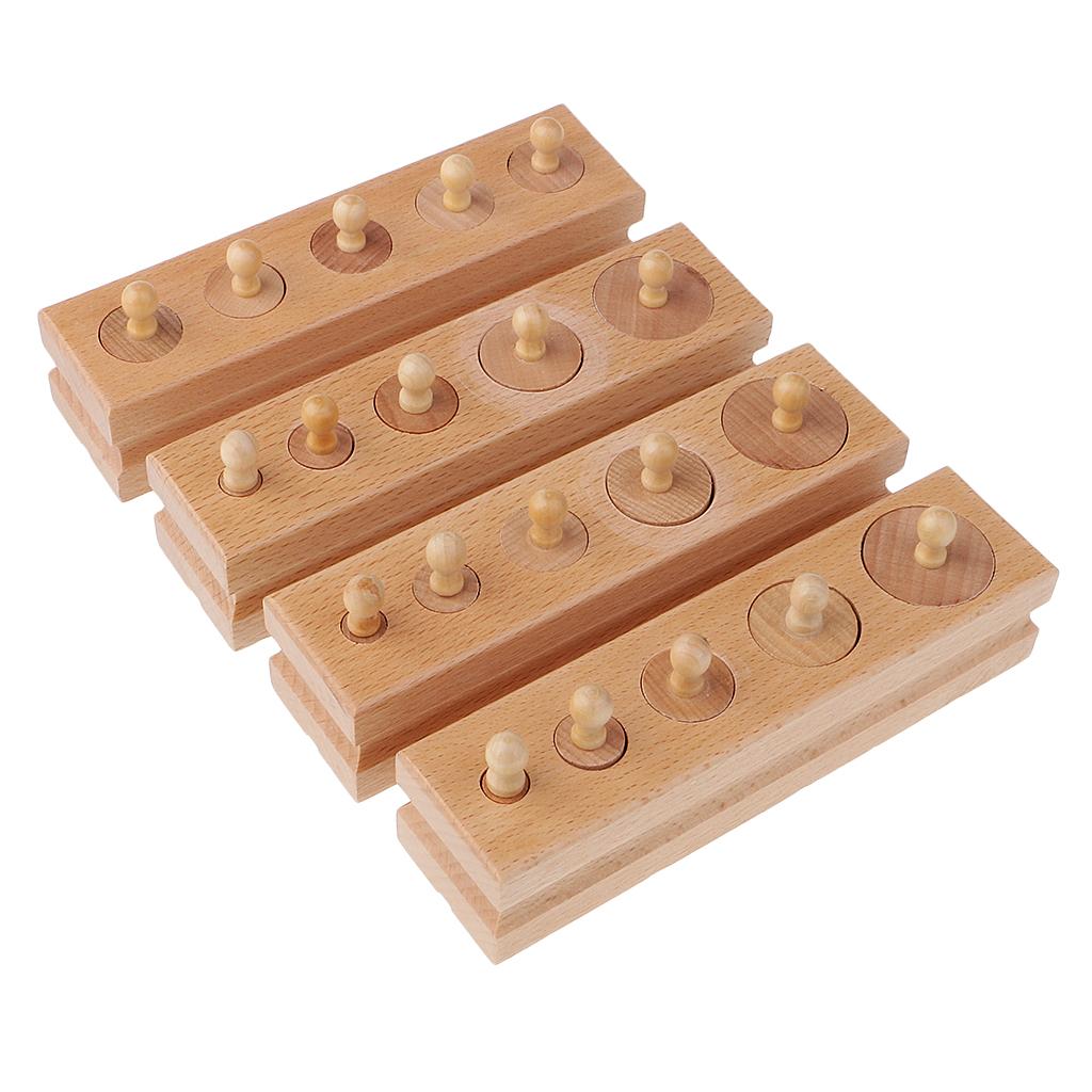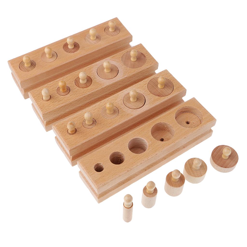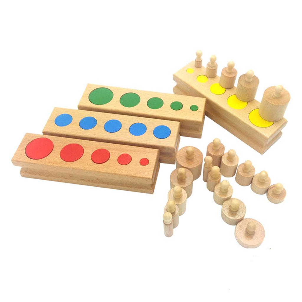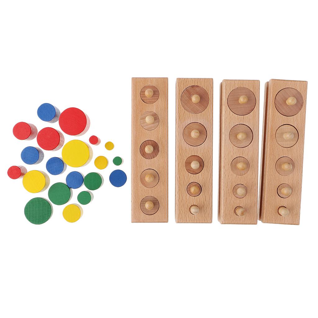 Montessori Childhood Early Developing Wooden Toy - 4 Blocks Socket Cylinders