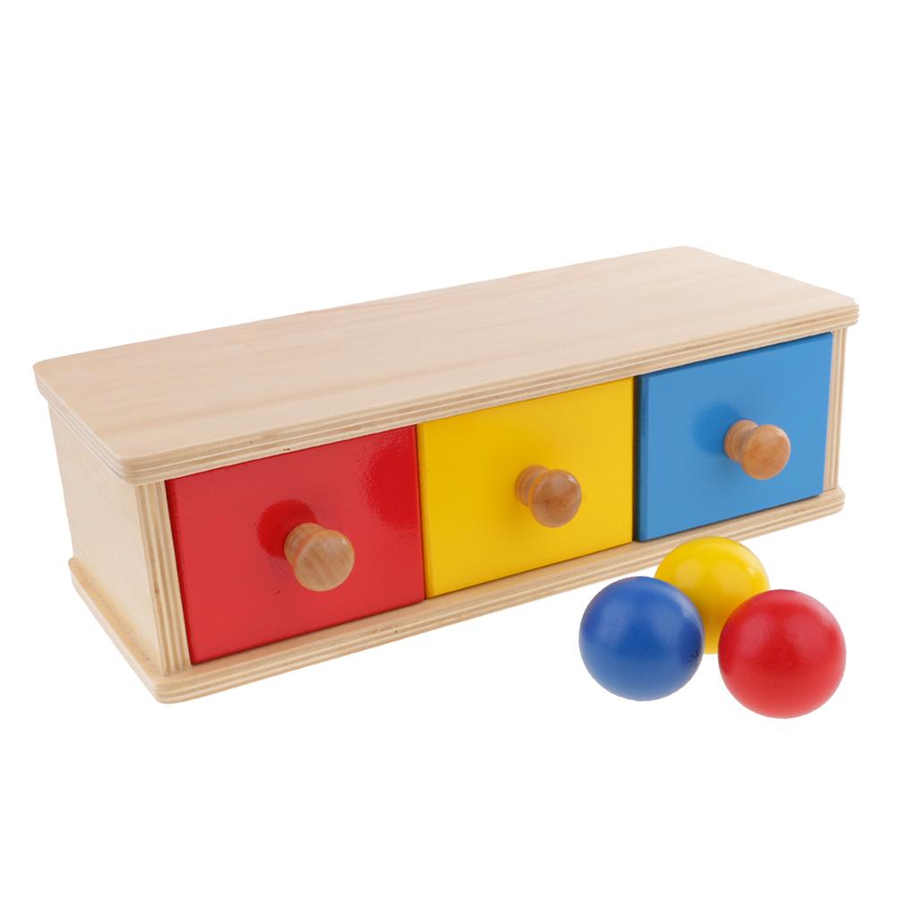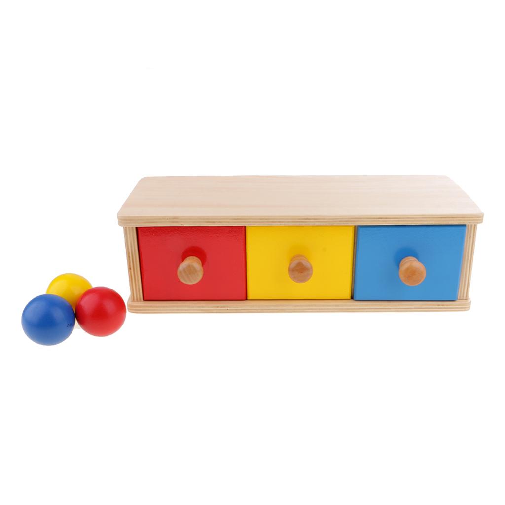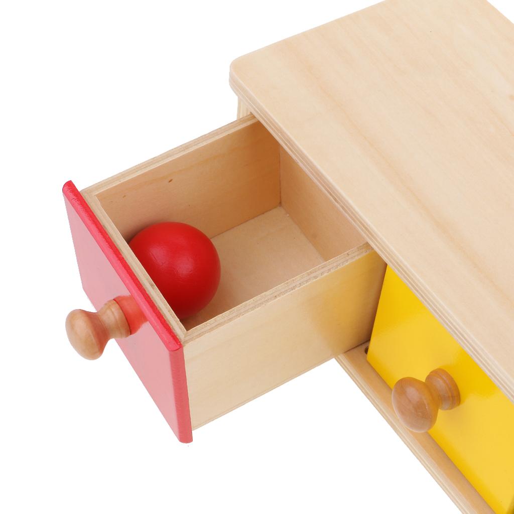 Montessori Educational Toy - Wooden Box Drawer Container w/ Ball Early Learn