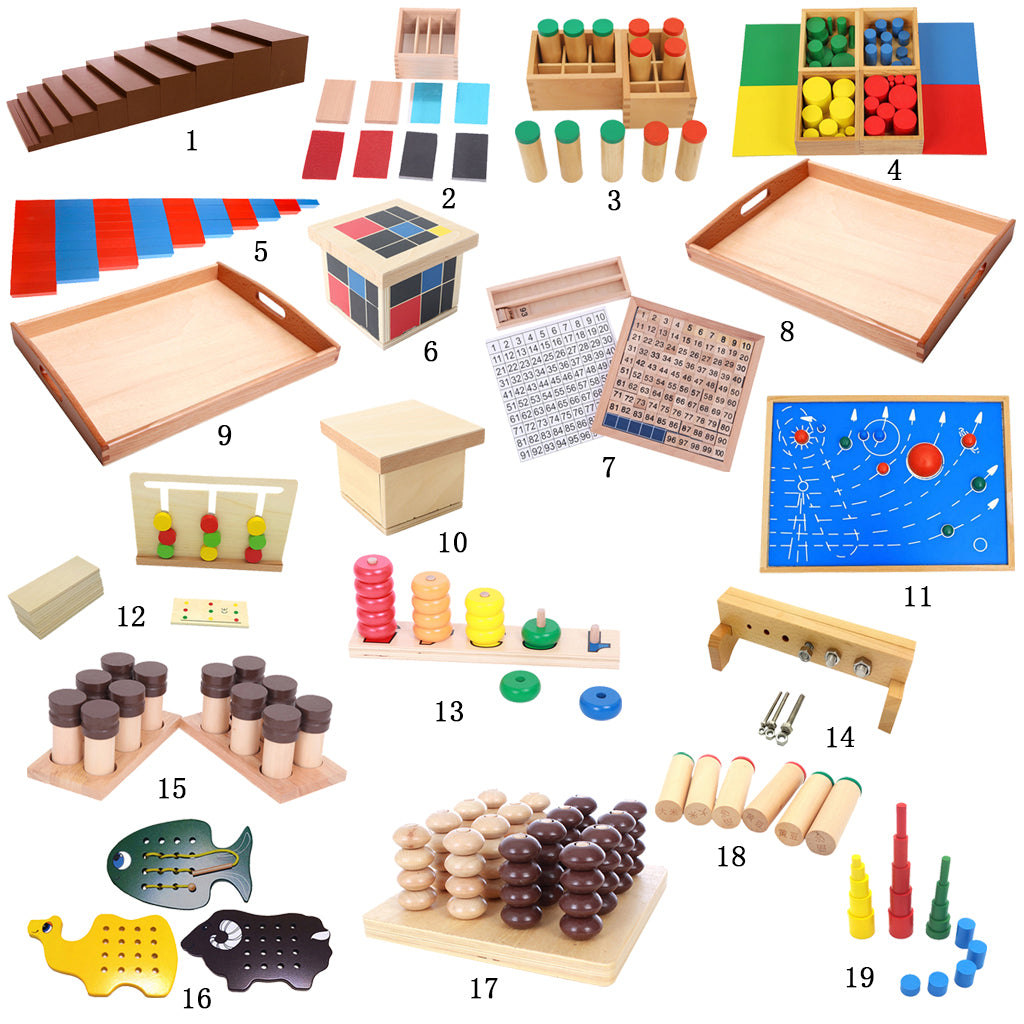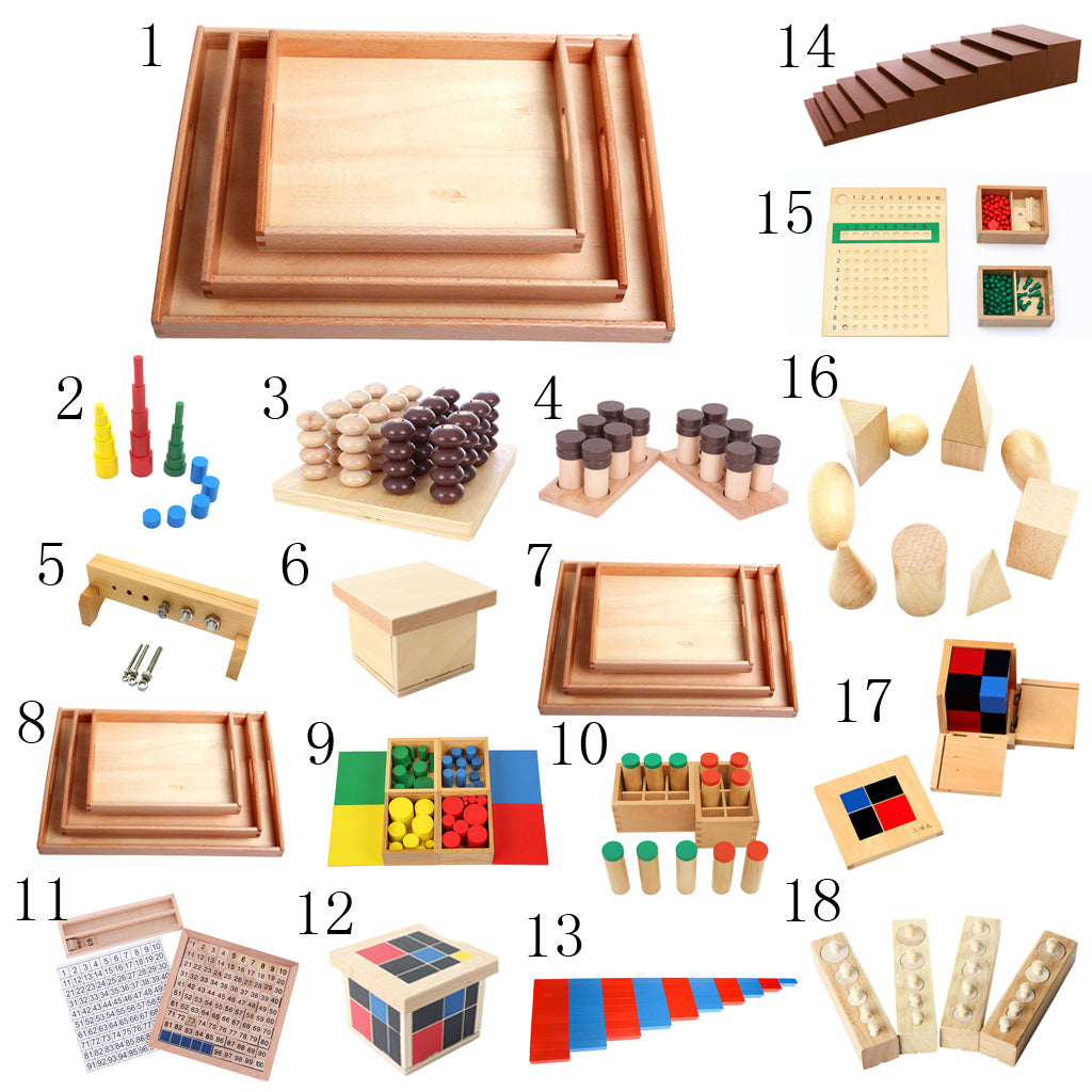 • Wooden Brown Stair/Broad Stair Montessori Sensorial Exercise Kids Early Educational Toy Family Set