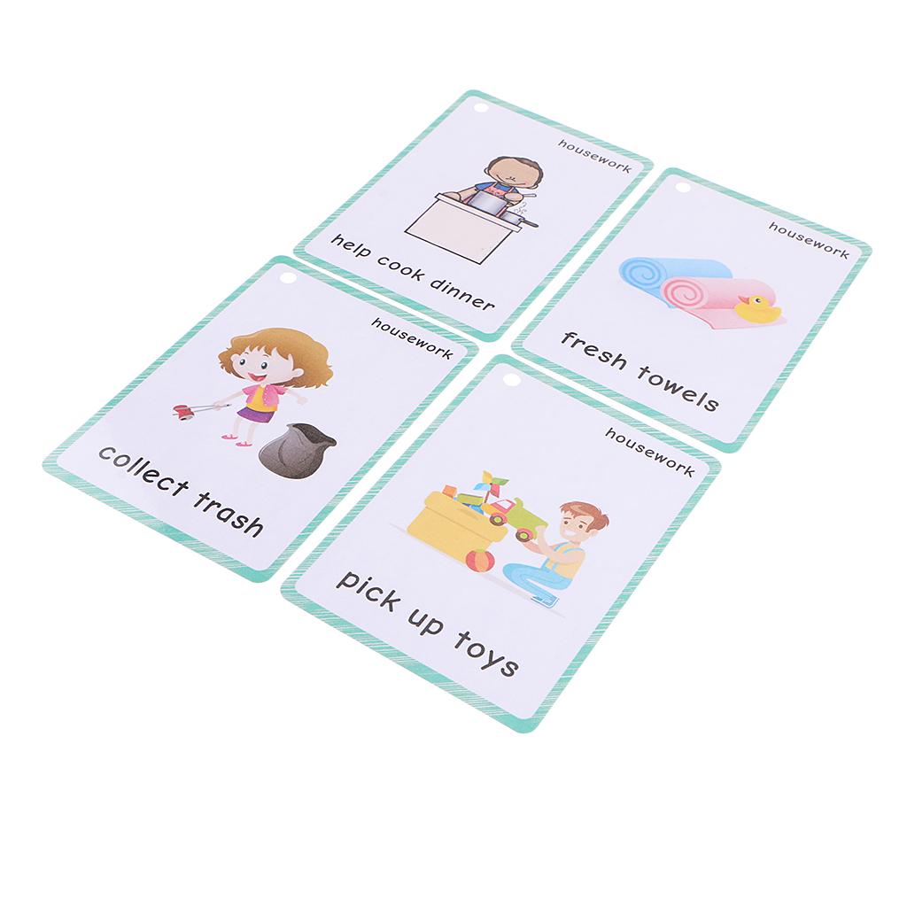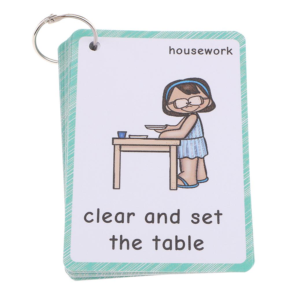 Preschool Educational Sight Word Flash Cards Housework 28 Pieces
