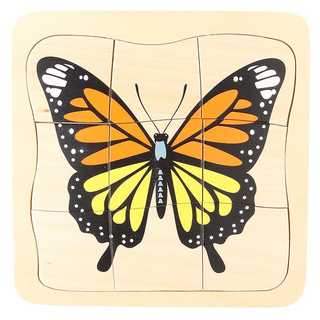 Different Layers of jigsaw puzzles illustrate the growth process from egg to butterfly