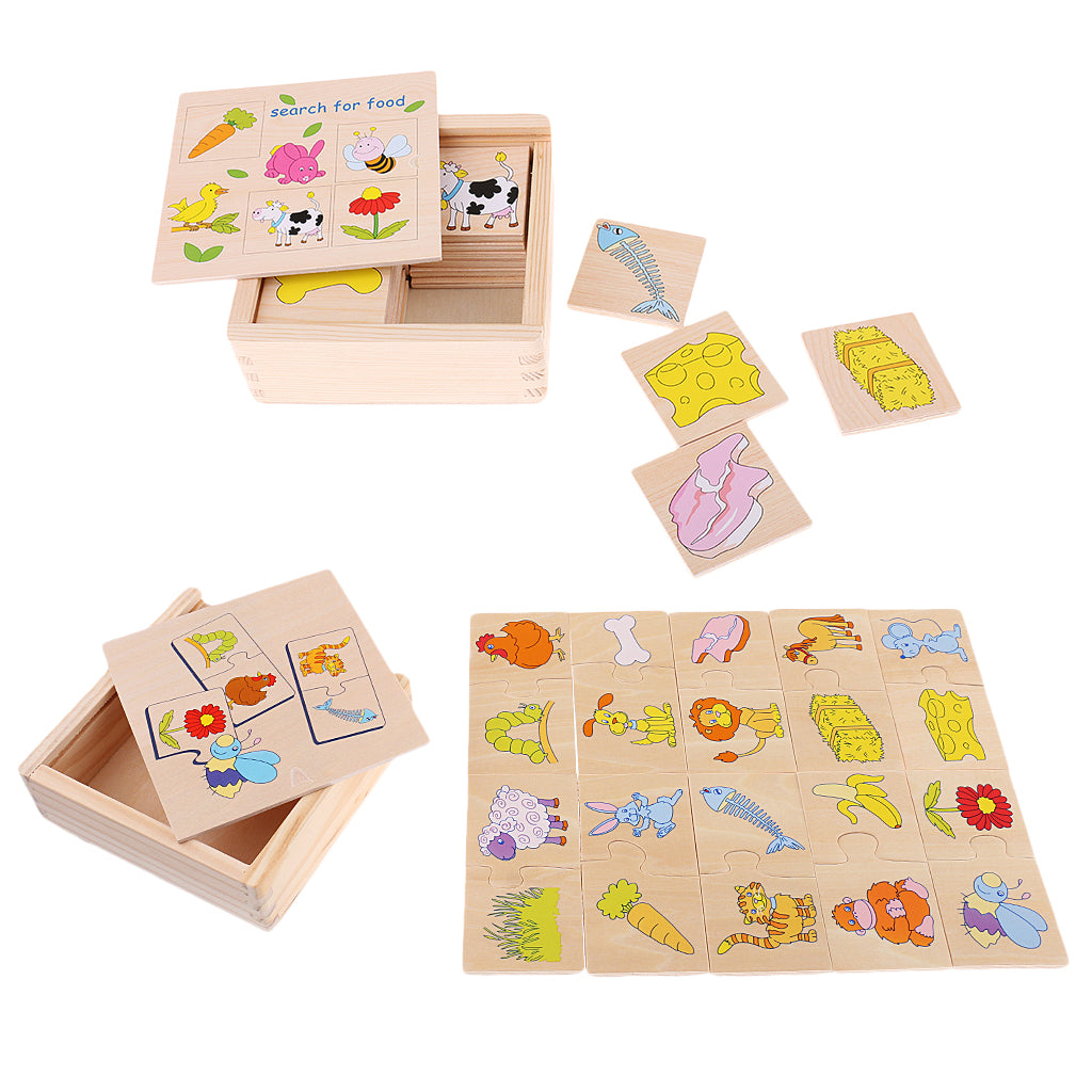 Animal and Food Pairing Jigsaw Puzzles for Kids Early Learning Educational Toy
