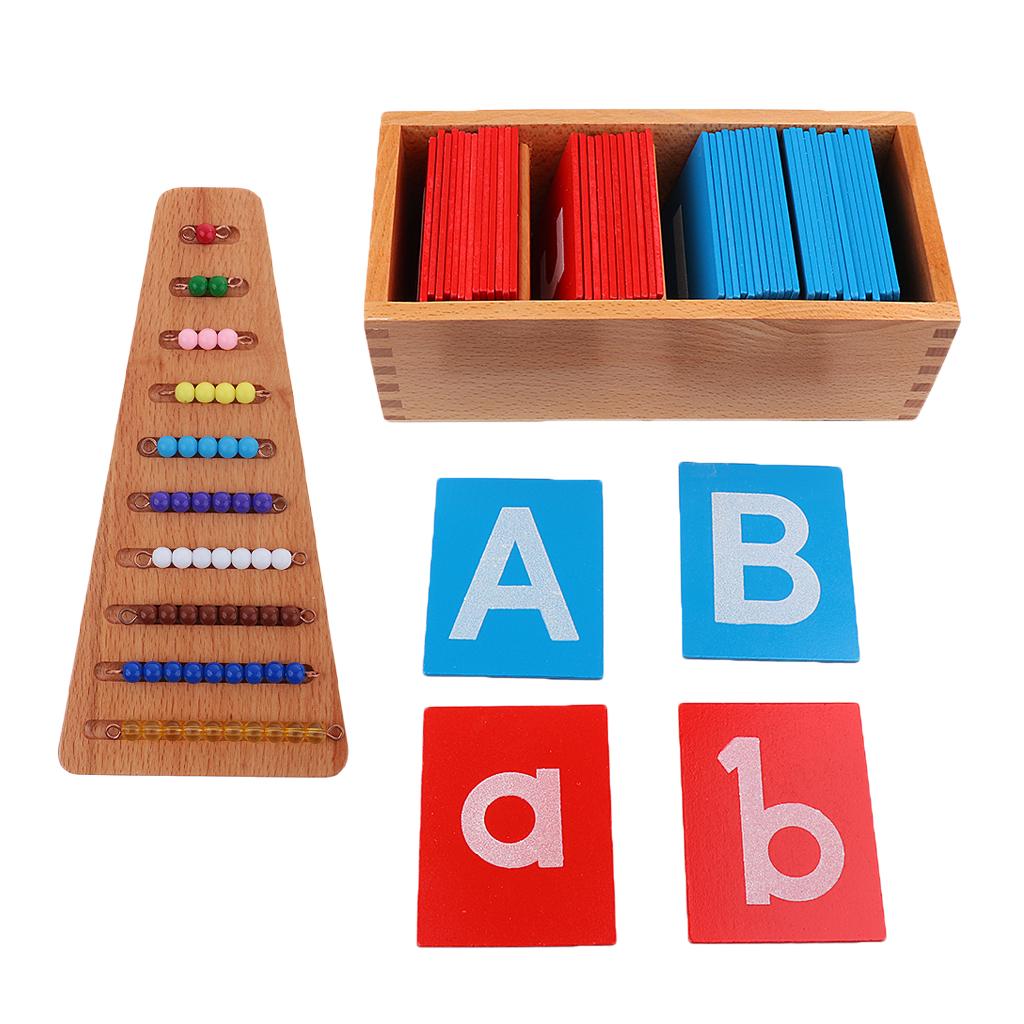 Montessori Material Toy Letter A-Z Sandpaper Alphabets Board + Montessori Math Materials Colored Bead Stairs with Tray Early Training Toys