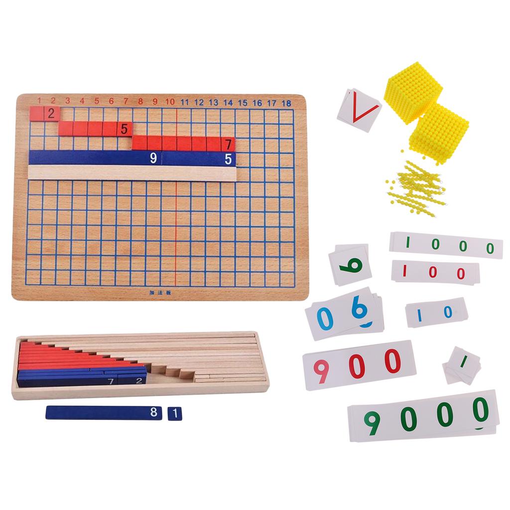 Wooden Montessori Mathematics Material - Additon and Subtration Board + Bank Game Math Counting Toys