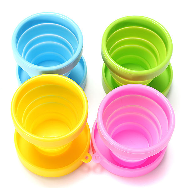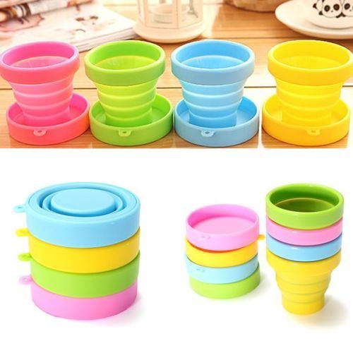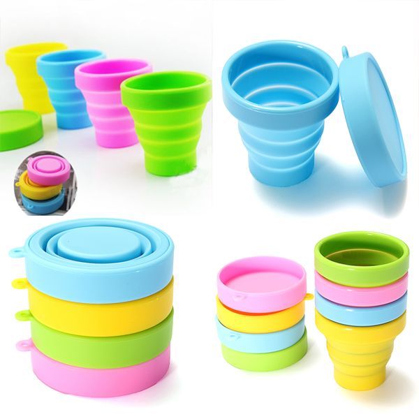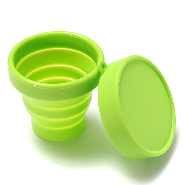 170ml Silicone Foldable Collapsible Cup with Lid Outdoor Camping Travel Green