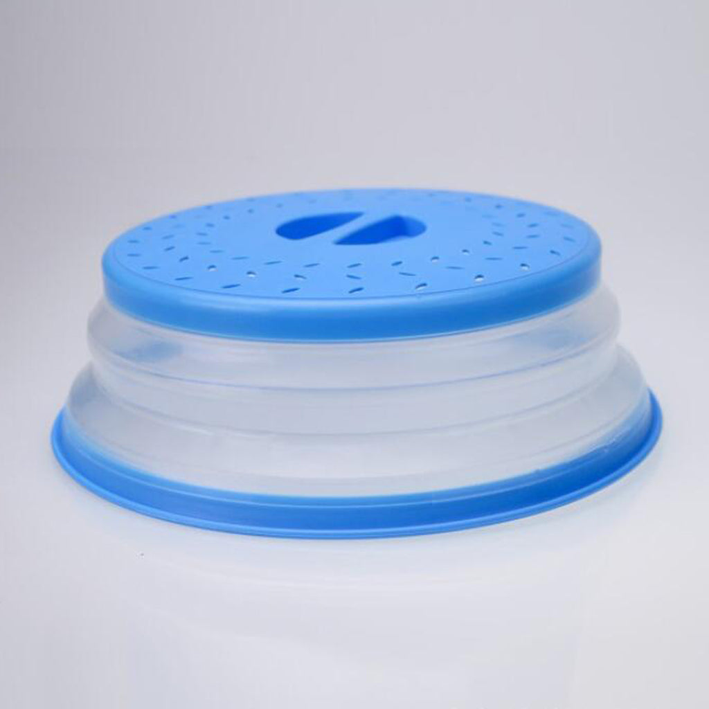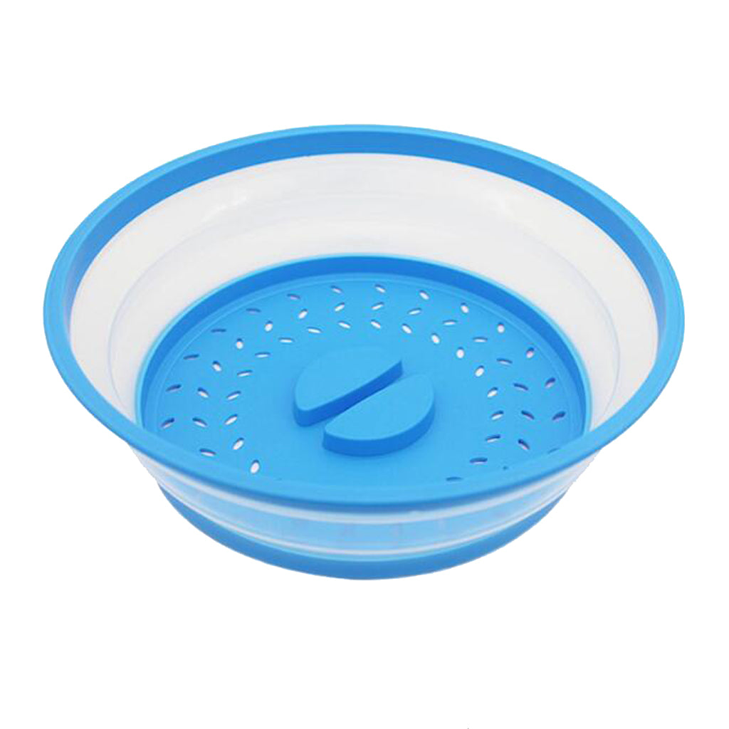 2 in 1 Collapsible Microwave Cover Foldable Nonslip Colander Strainer Blue