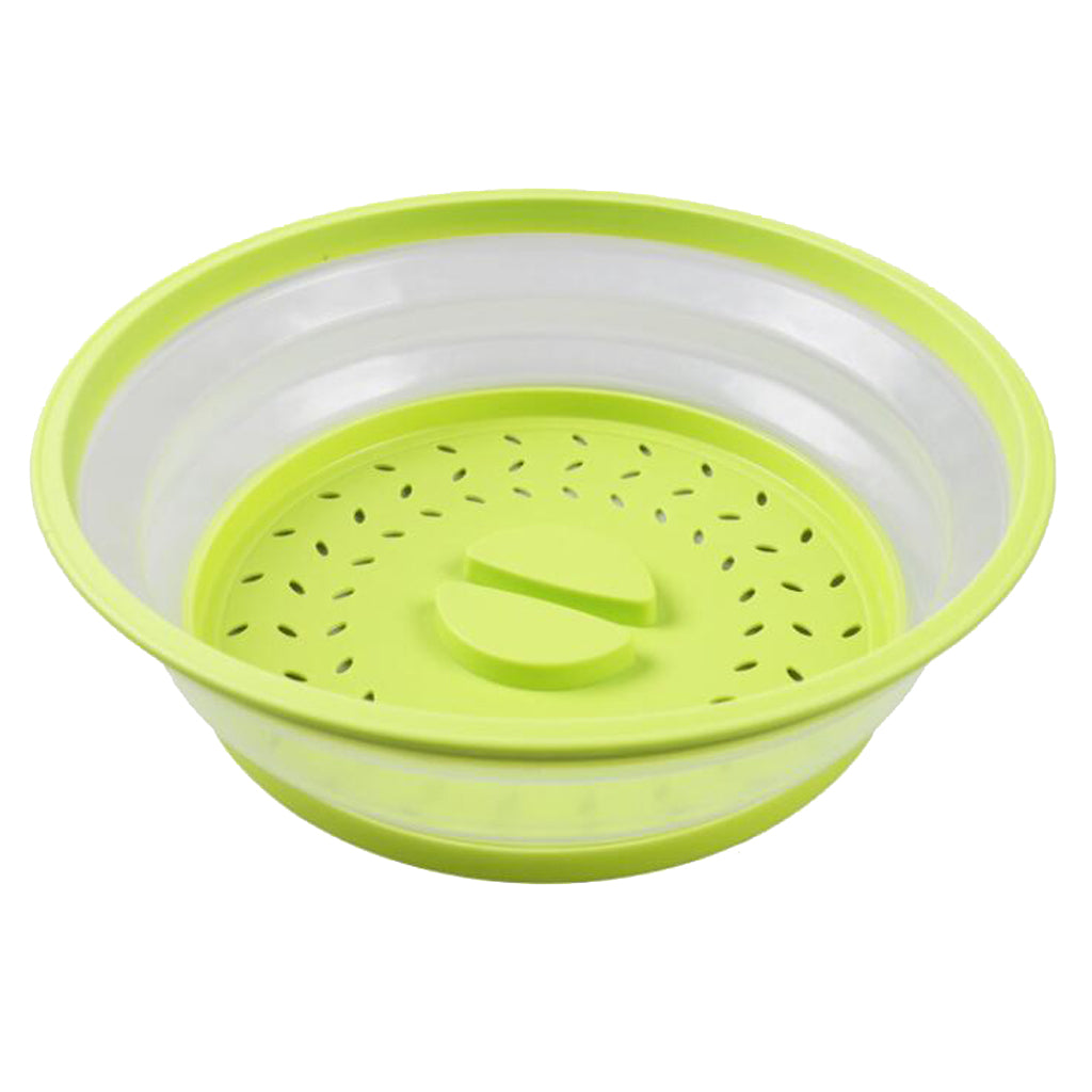 2 in 1 Collapsible Microwave Cover Foldable Nonslip Colander Strainer Yellow