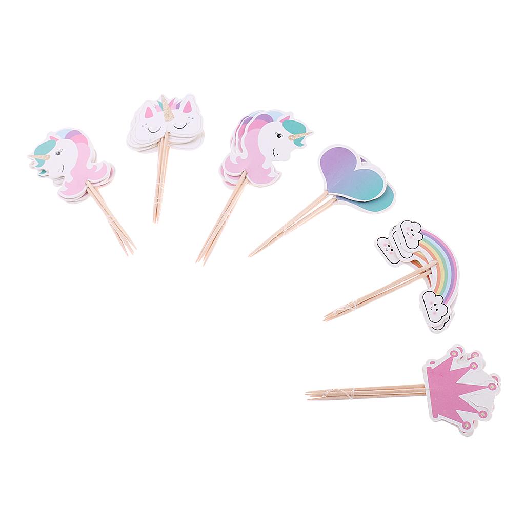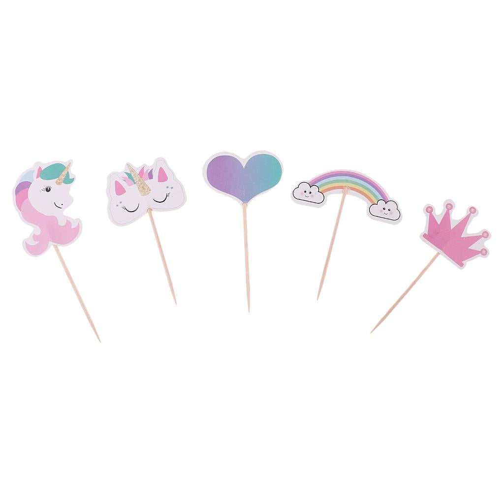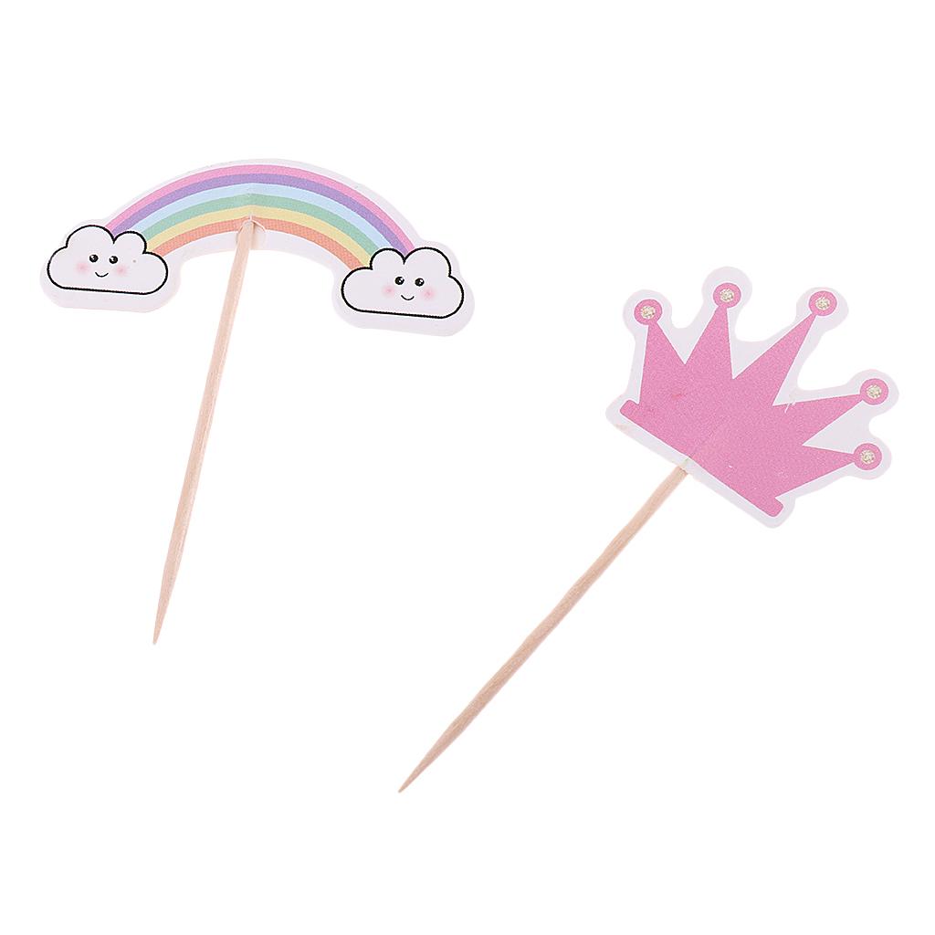 Assorted rainbow, unicorn, heart, crown shape cake topper food picks