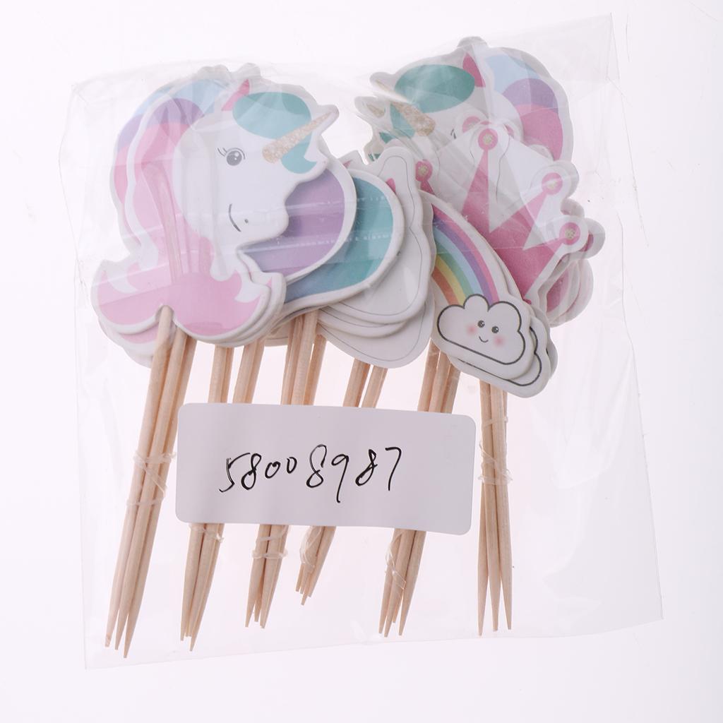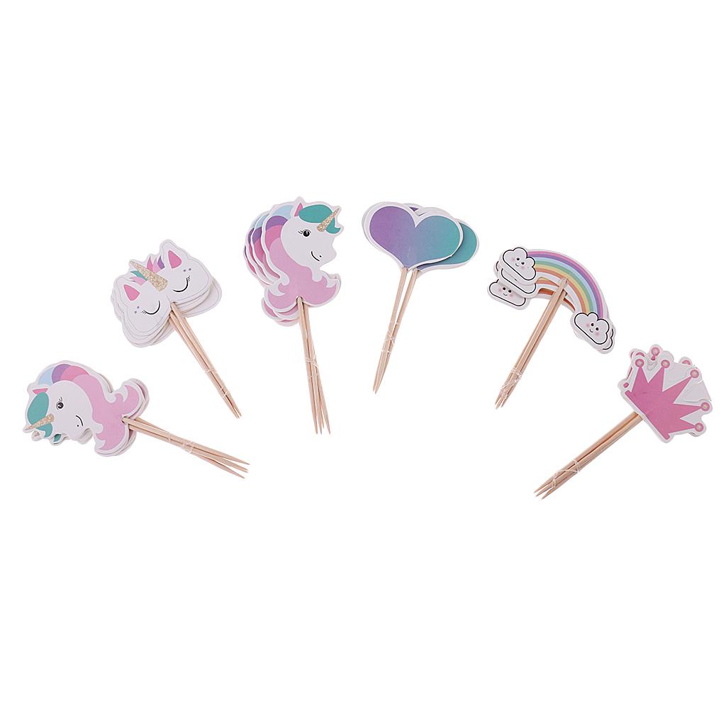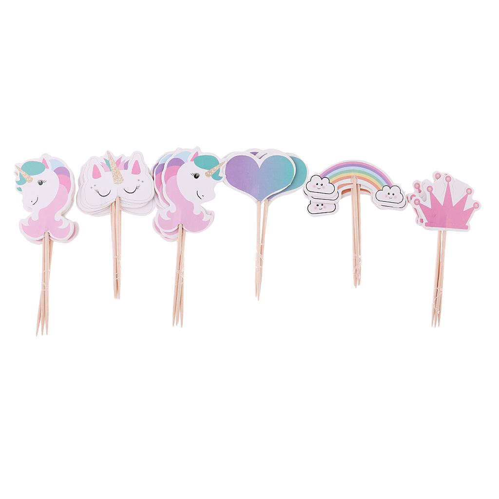 Assorted rainbow, unicorn, heart, crown shape cake topper food picks