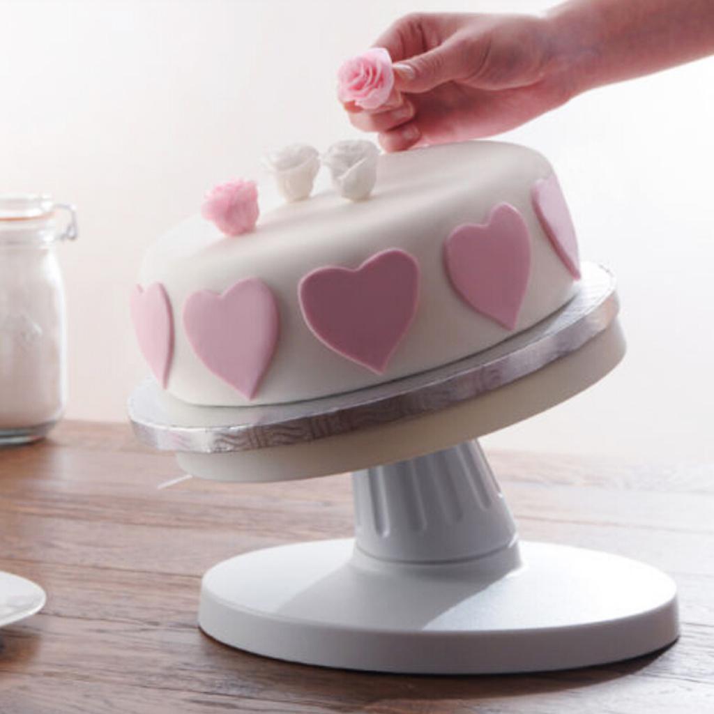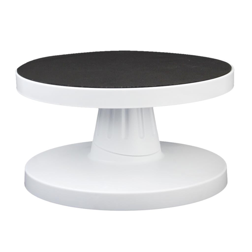 This cake decorating turntable makes cake, pie or flan creation simple. The smooth rotation allows for free flowing piping or smoothing and circular markings is ideal for centering the cake. Strong and lightweight.