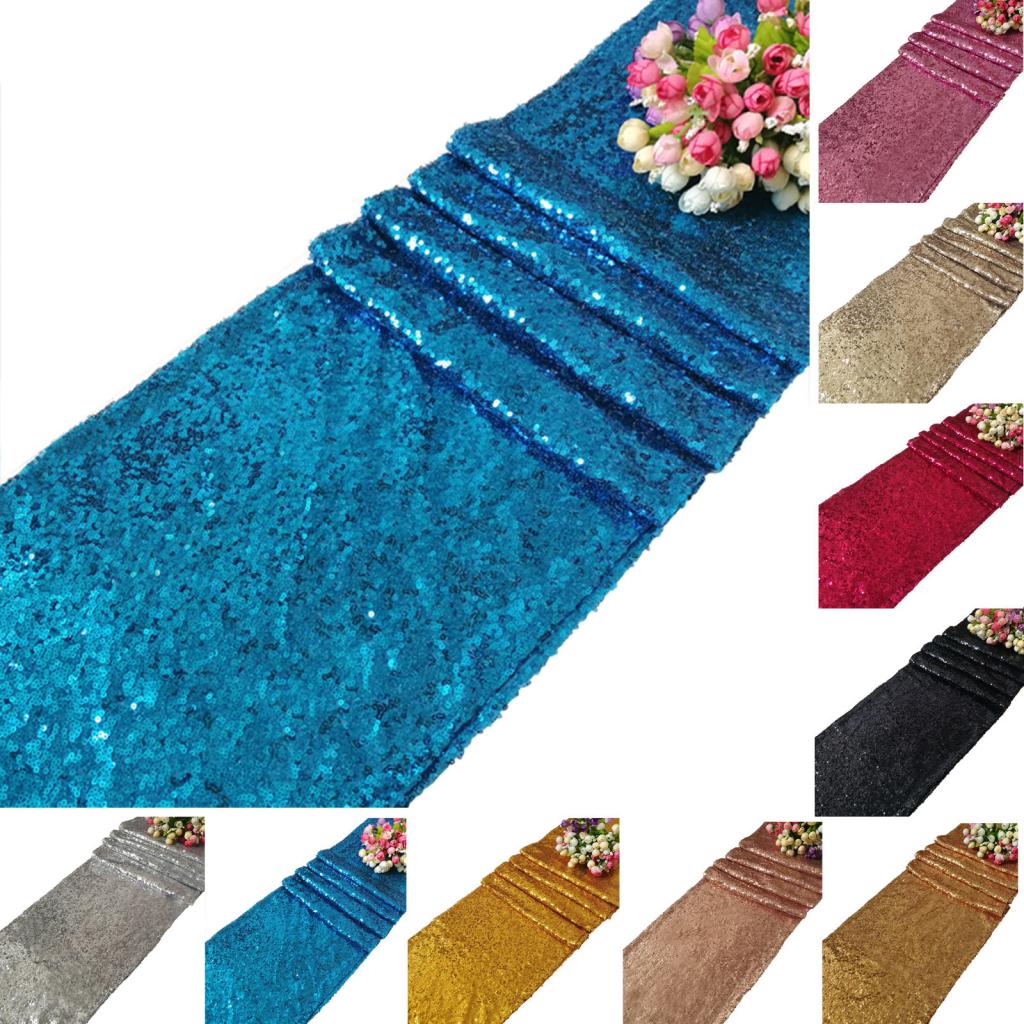 30x275cm Glitter Sequin Table Runner Wedding Party Venue Decors Blue