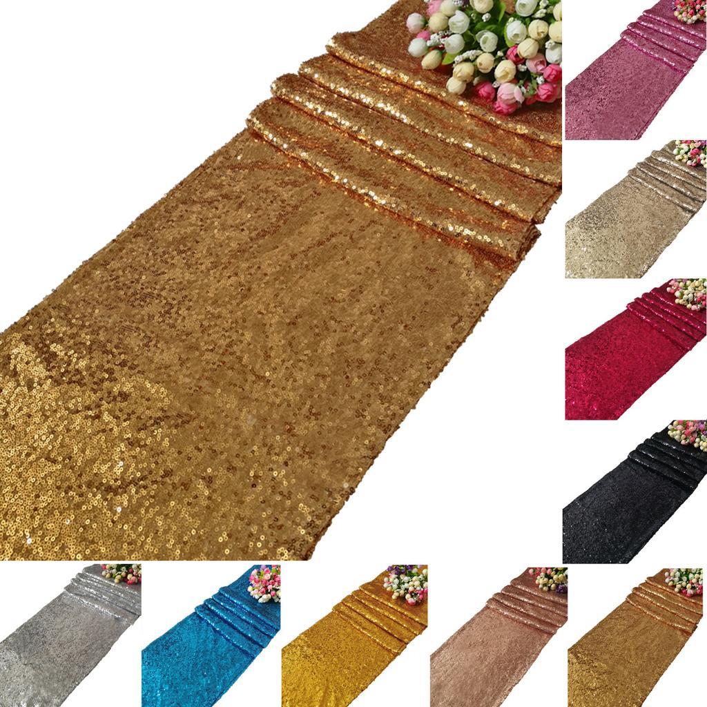 30x275cm Glitter Sequin Table Runner Wedding Party Venue Decors Light Gold