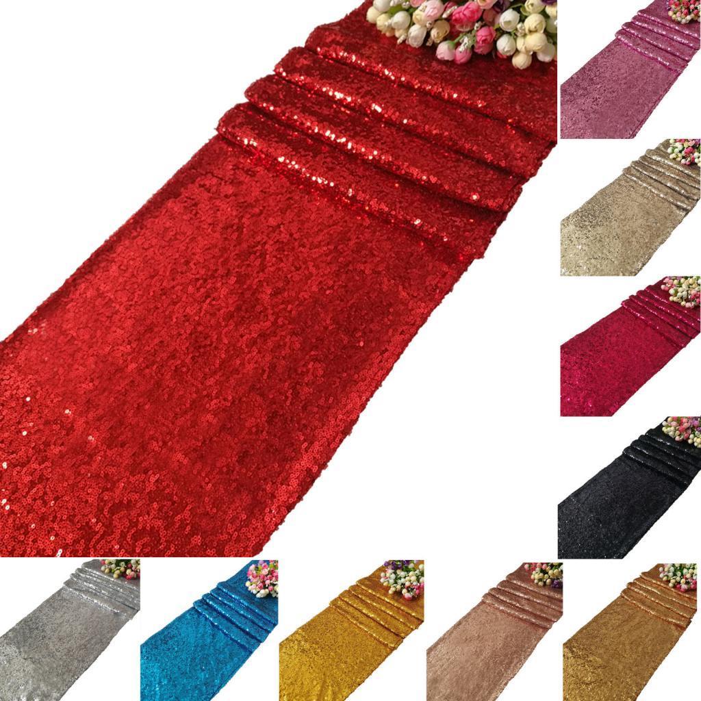 30x275cm Glitter Sequin Table Runner Wedding Party Venue Decors Red