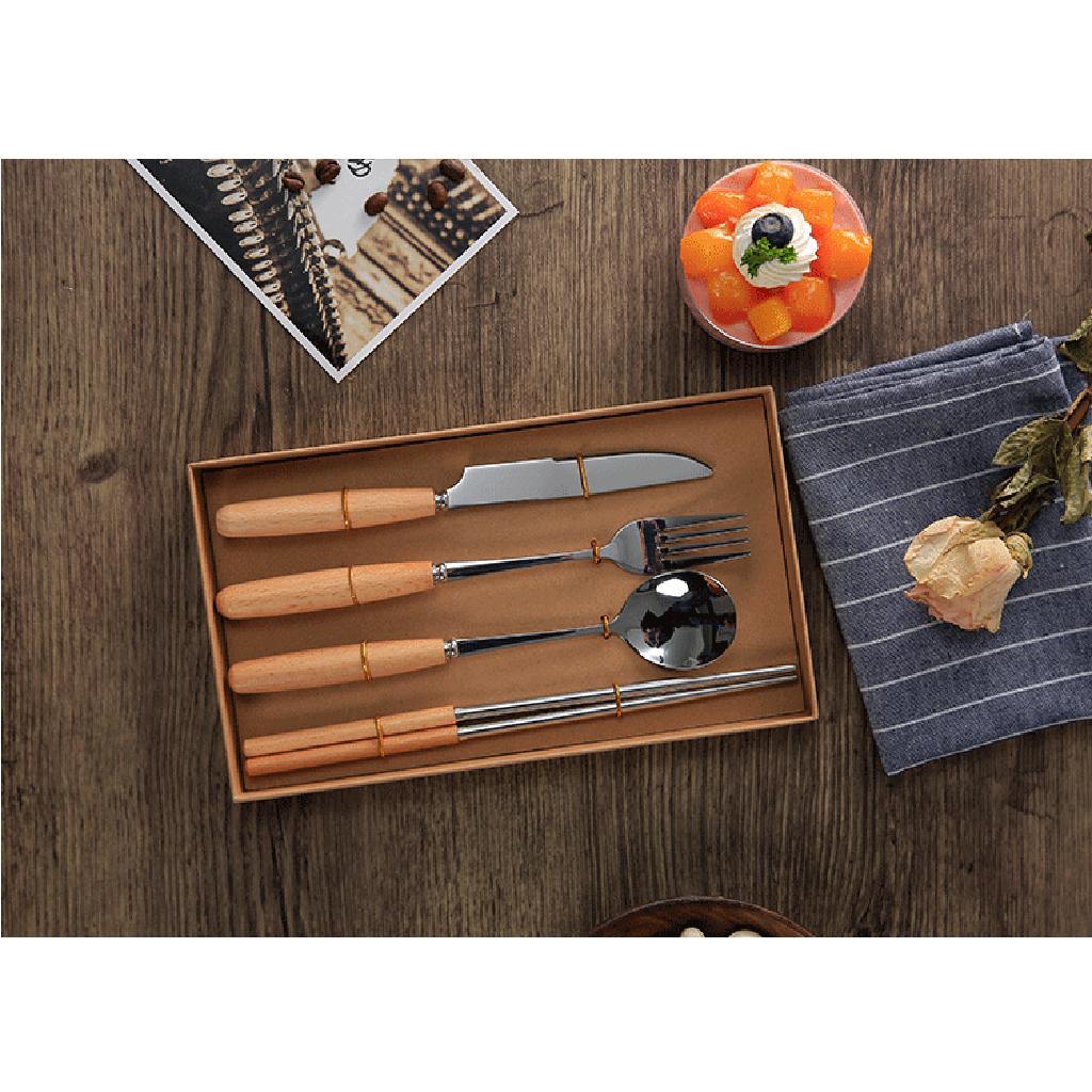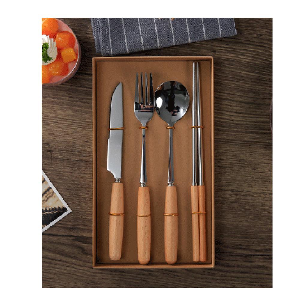 4-piece flatware set, include one of each: dinner fork, dinner spoon, dinner knife, chopsticks .