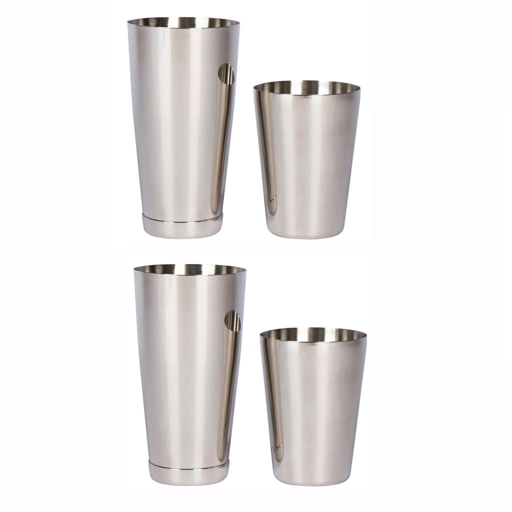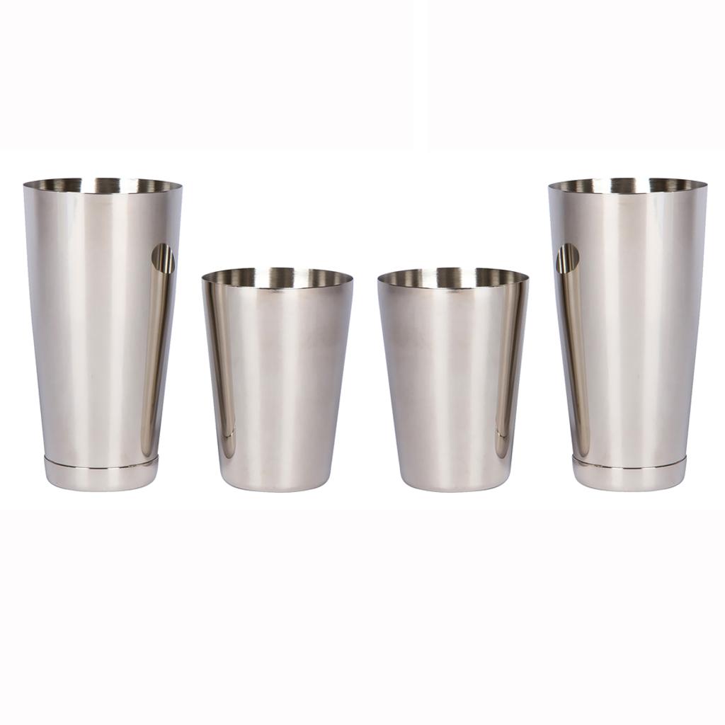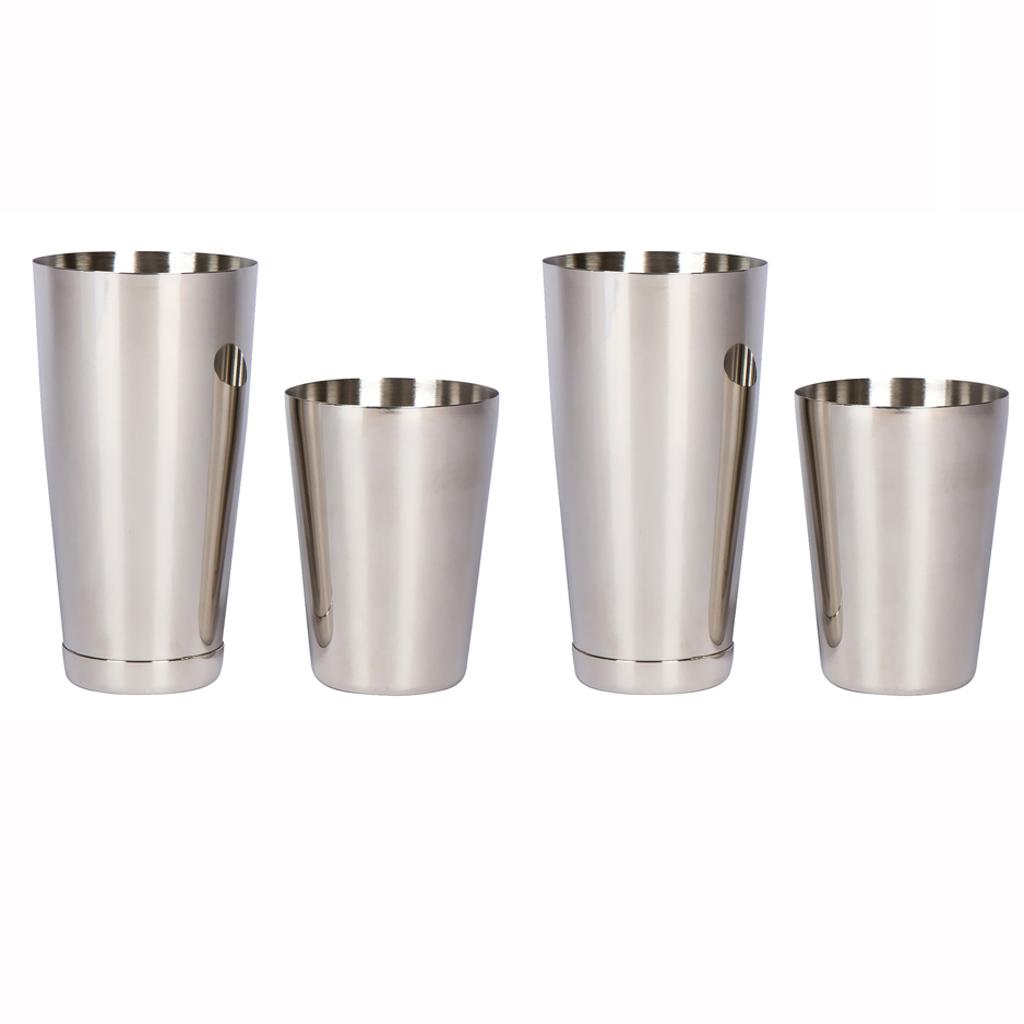 The smaller shaker has a wider mouth so you can use it with a large tin.