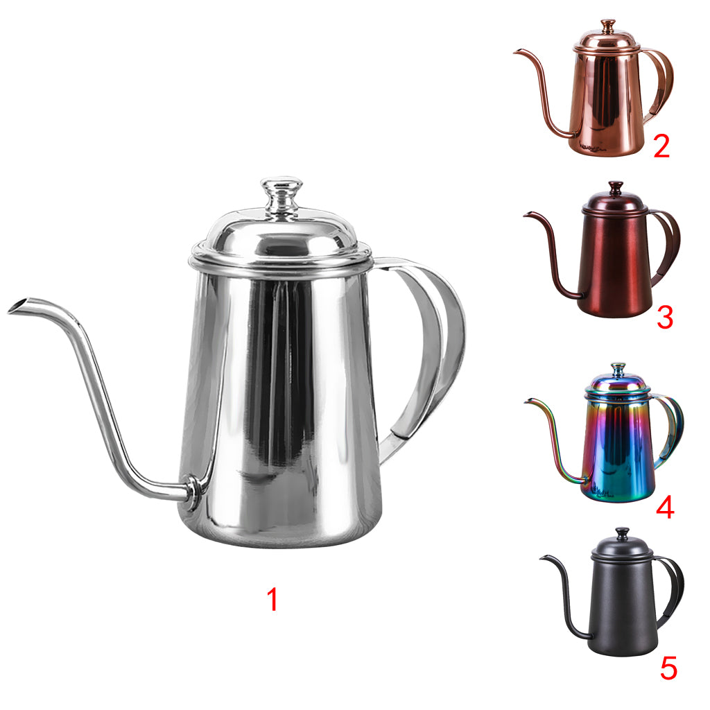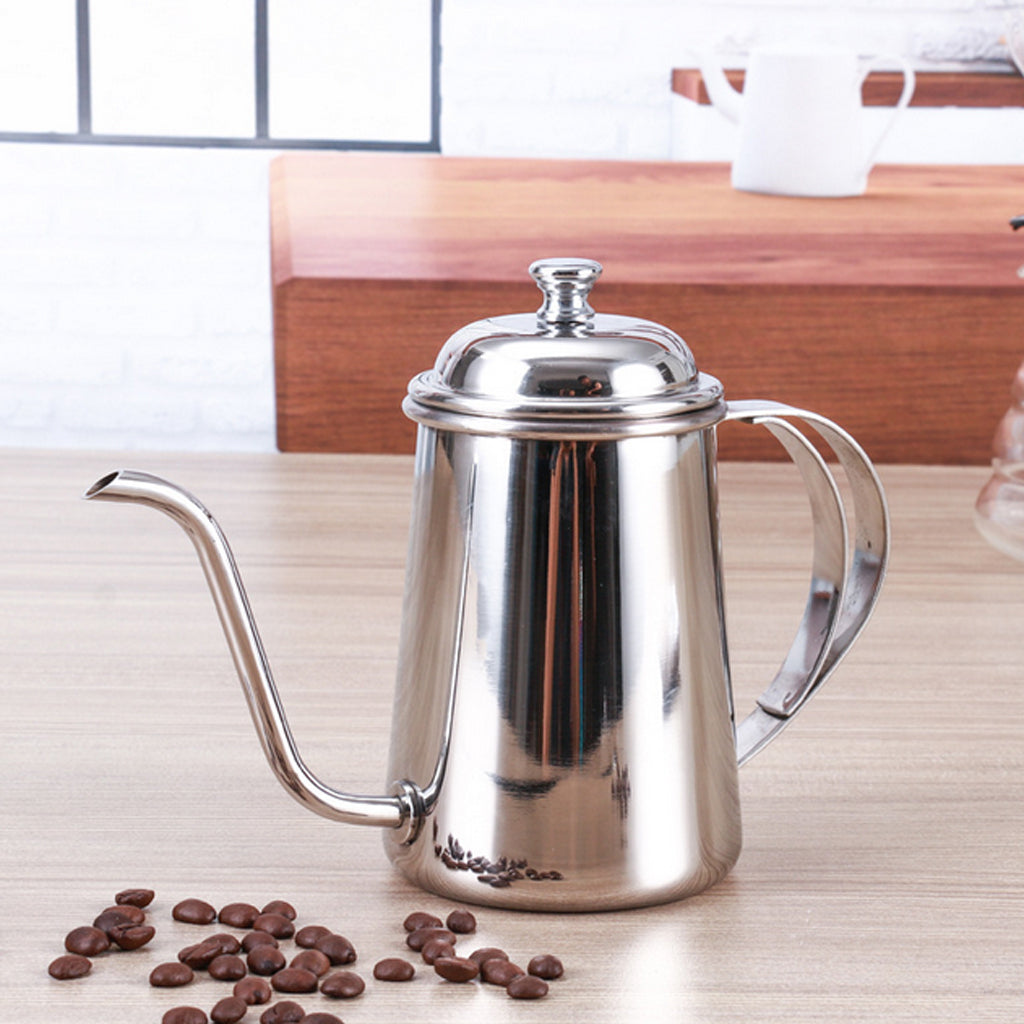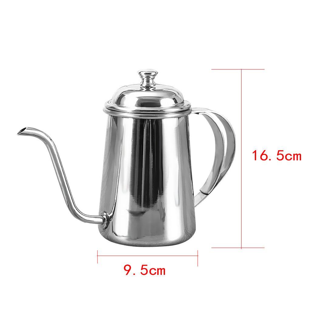 650ML Capacity Stainless Steel Hand Drip Coffee Moka Espresso Milk Pot Pour Over Tea Kettle Silver
