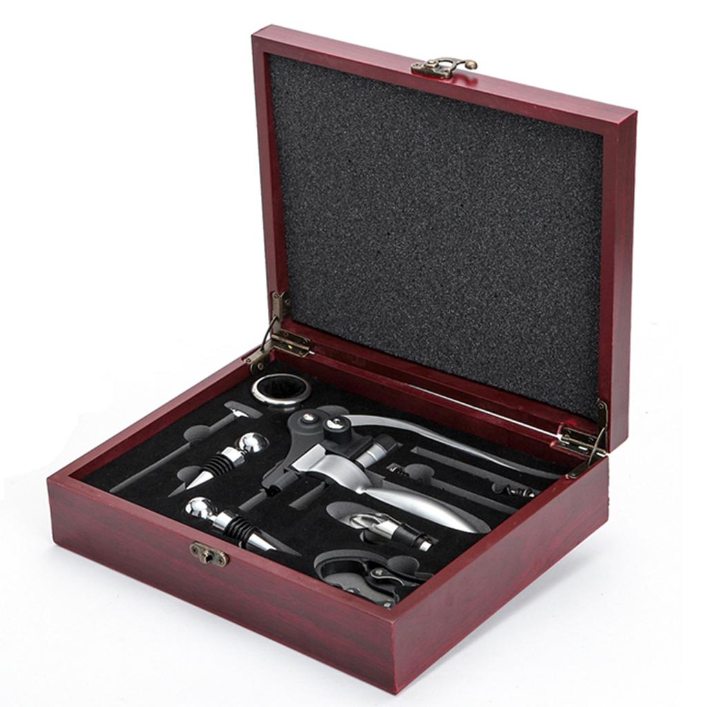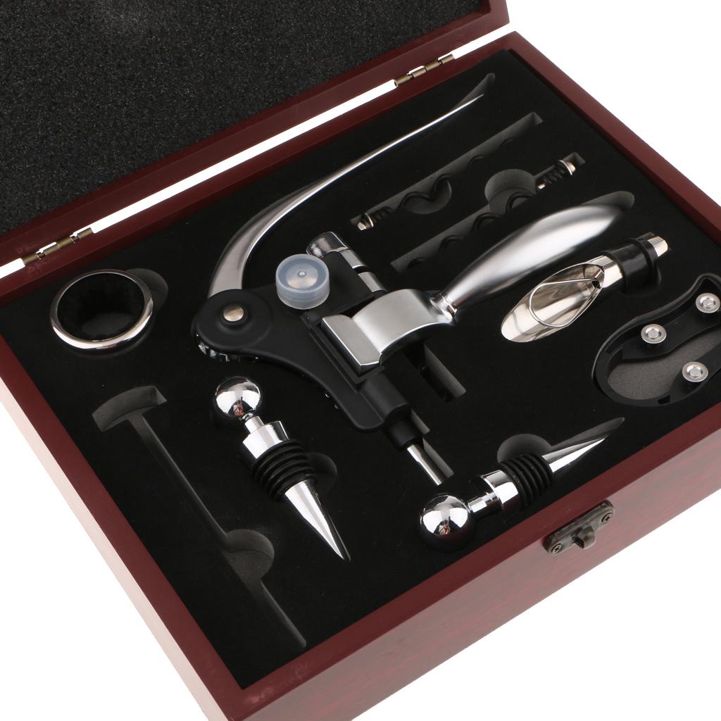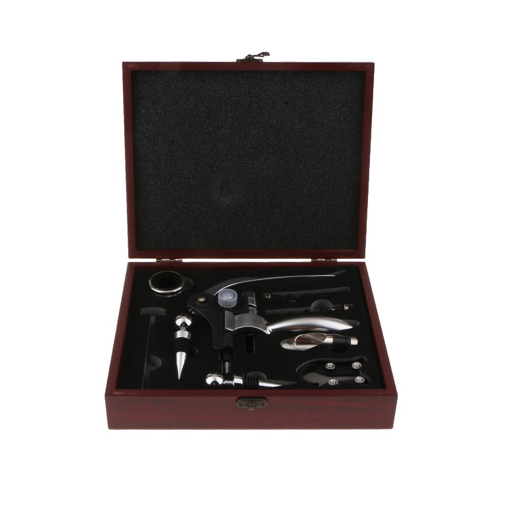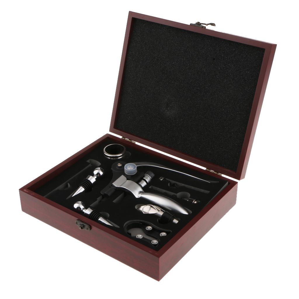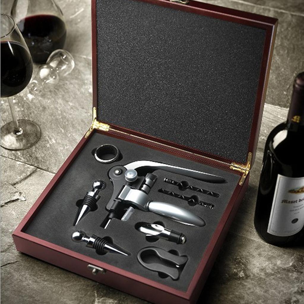 8 piece accessory set with everything you need to pop open and enjoy your fine wine.