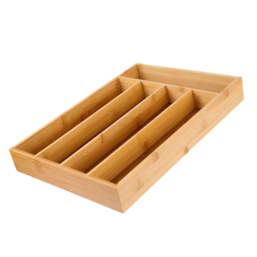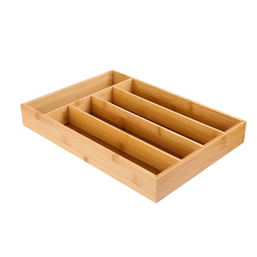 5 fixed compartments, available mainly in kitchen for utensils, forks, spoons, knives, and gadgets organization, also available in office and bathroom for stationery makeup and jewelry storage.