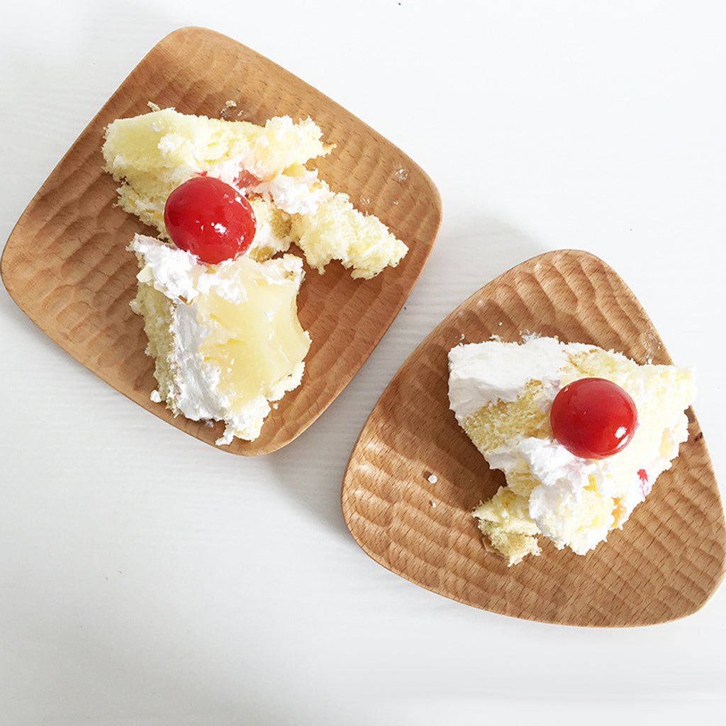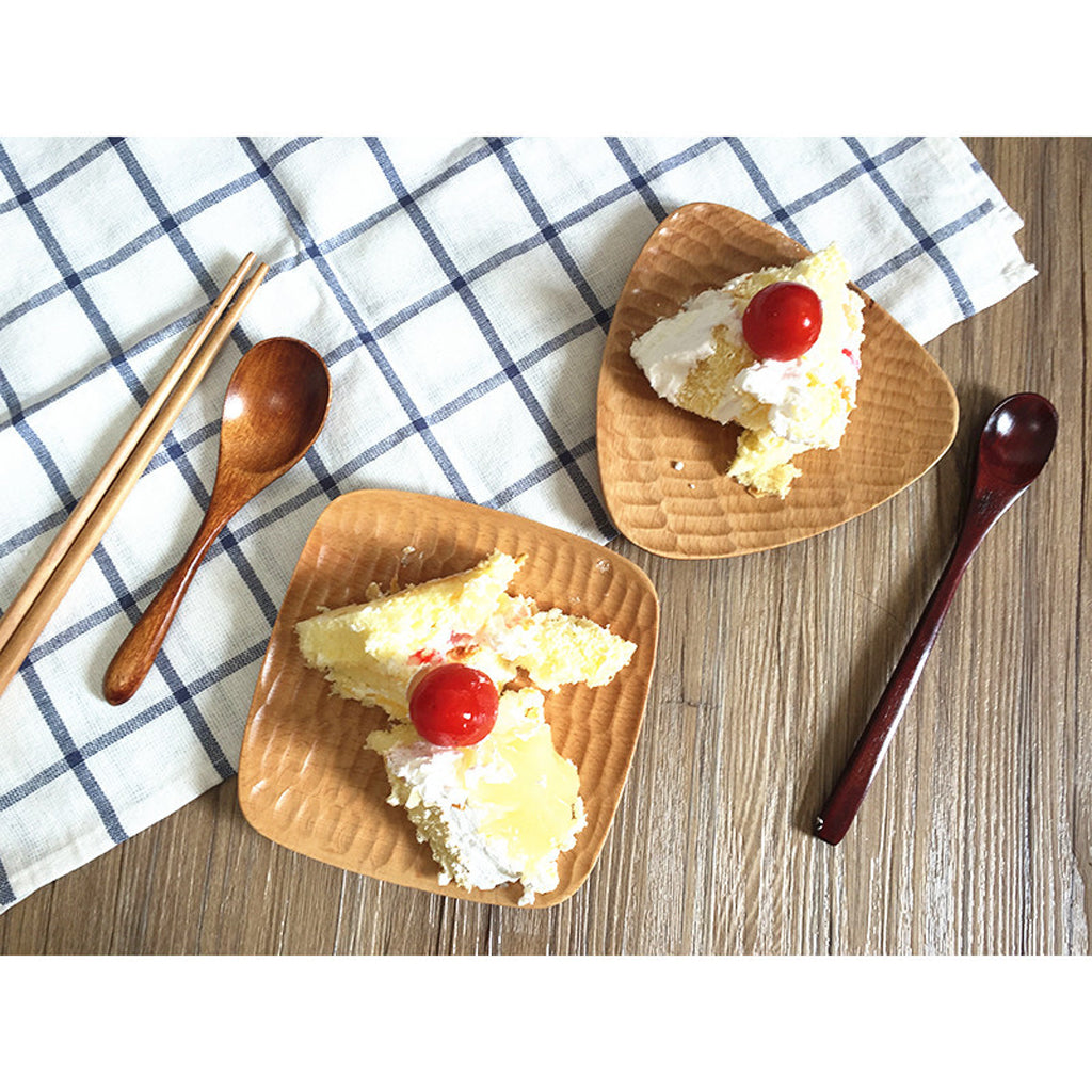 Beech Wooden Serving Plate Tray for Home Cafe Bar Restaurant Use Salt Sugar Sauce Cake Dish Pastry Holder Serving Triangle Tray