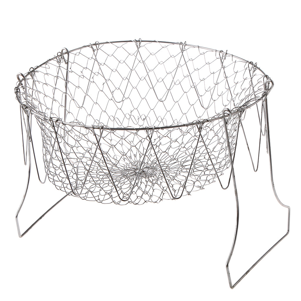 It starts off flat and instantly expands to a flexible basket that let you cook, boil, or deep fry foods with ease
