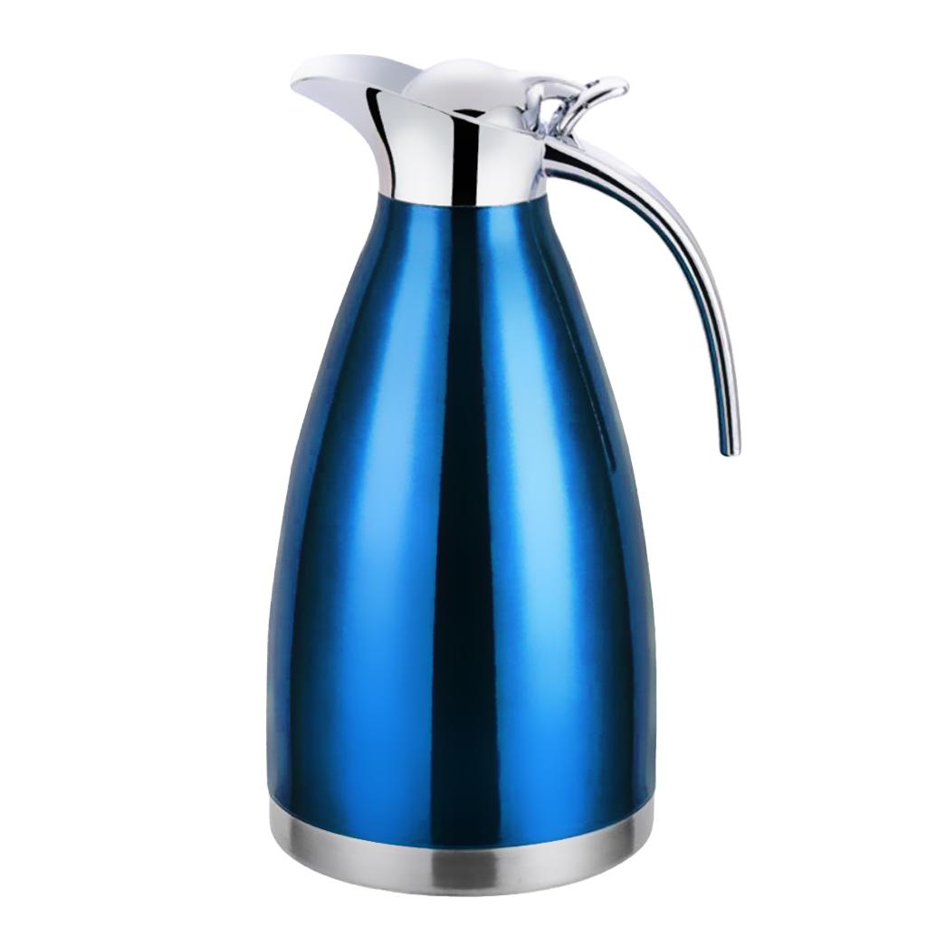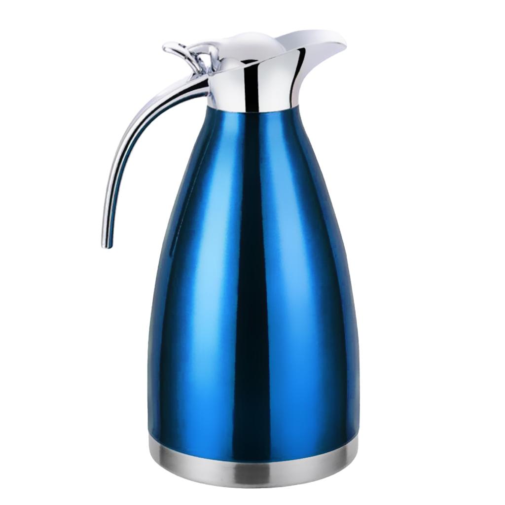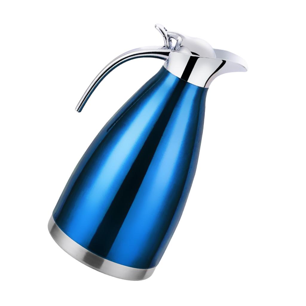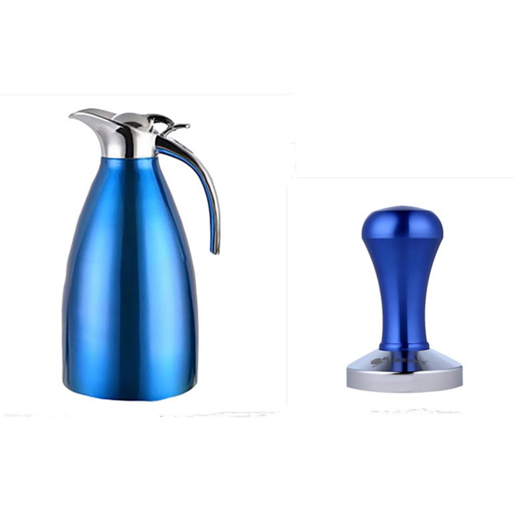 Coffee Pot Stainless Steel Double Wall Vacuum Insulated 2L Large Capacity Tea/Water Pitcher with Coffee Tamper Blue