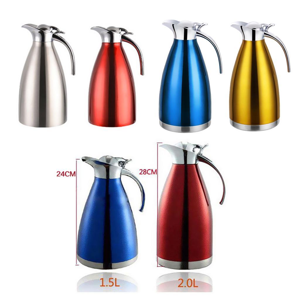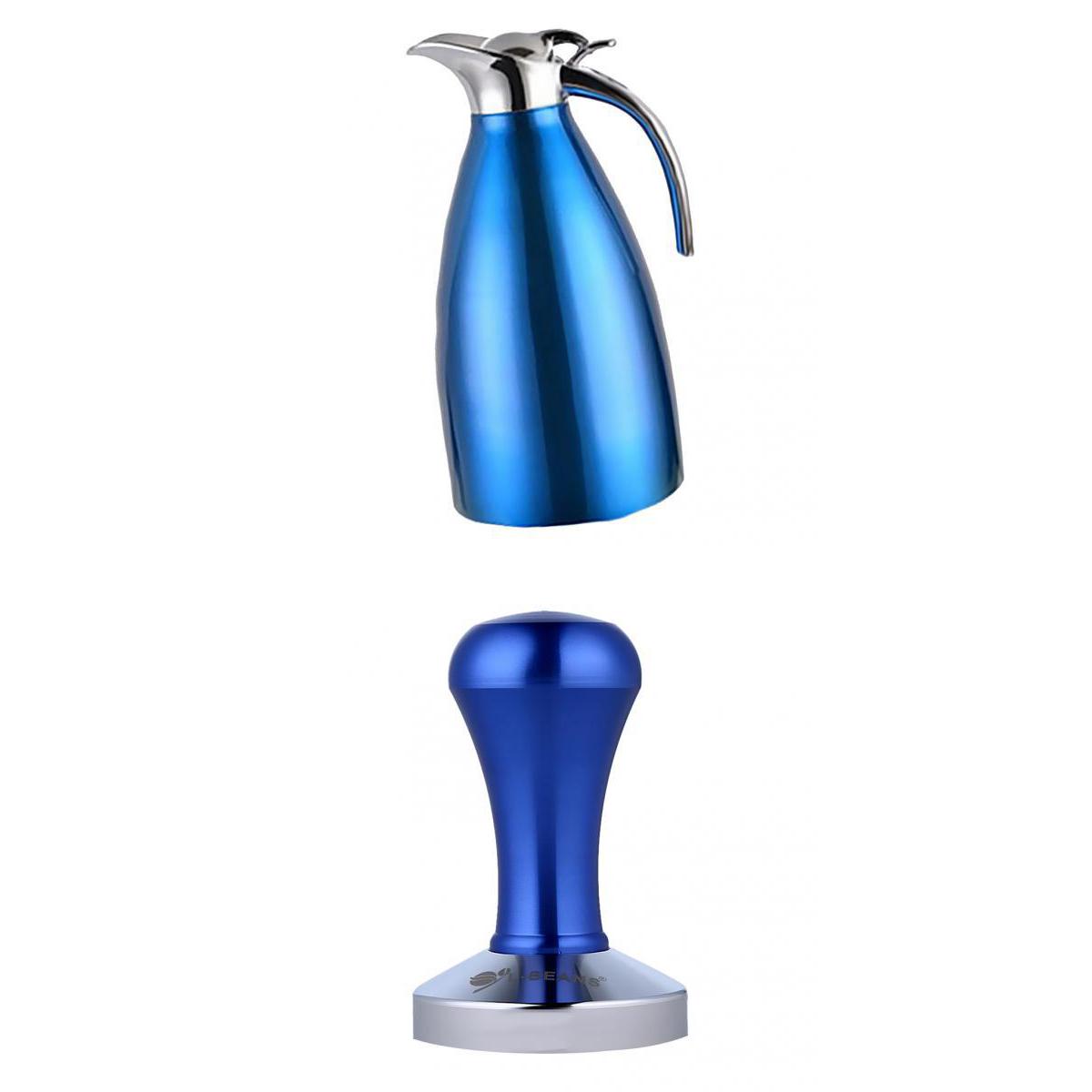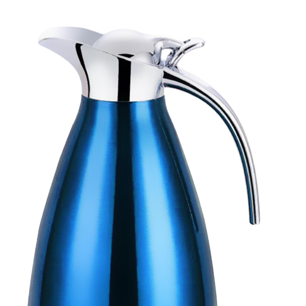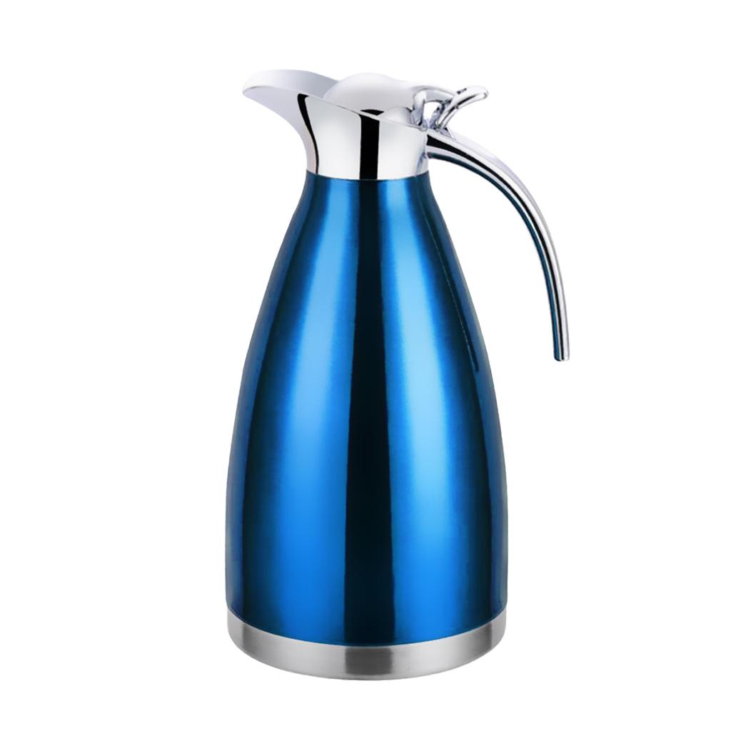 Coffee Pot Stainless Steel Double Wall Vacuum Insulated 2L Large Capacity Tea/Water Pitcher with Coffee Tamper Blue