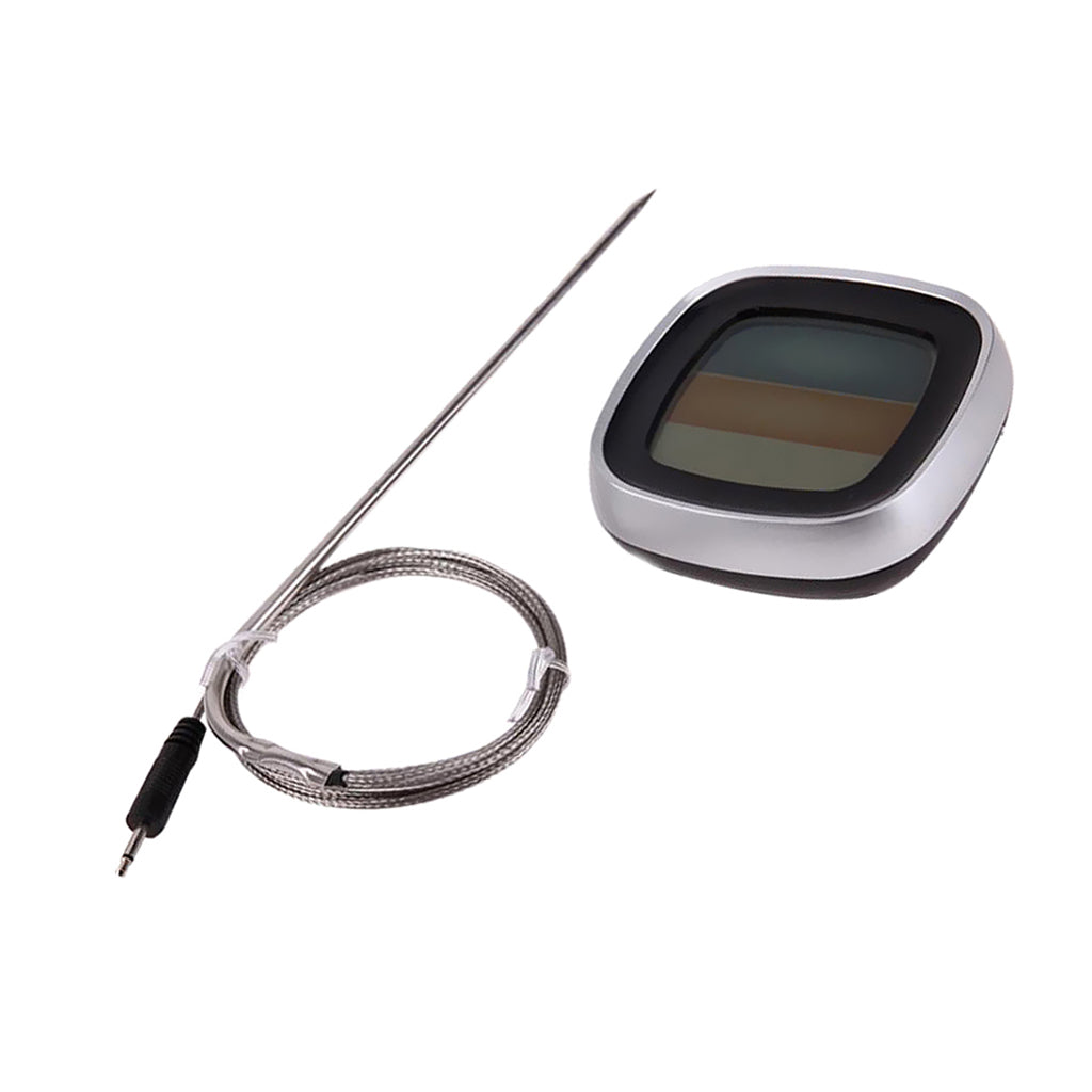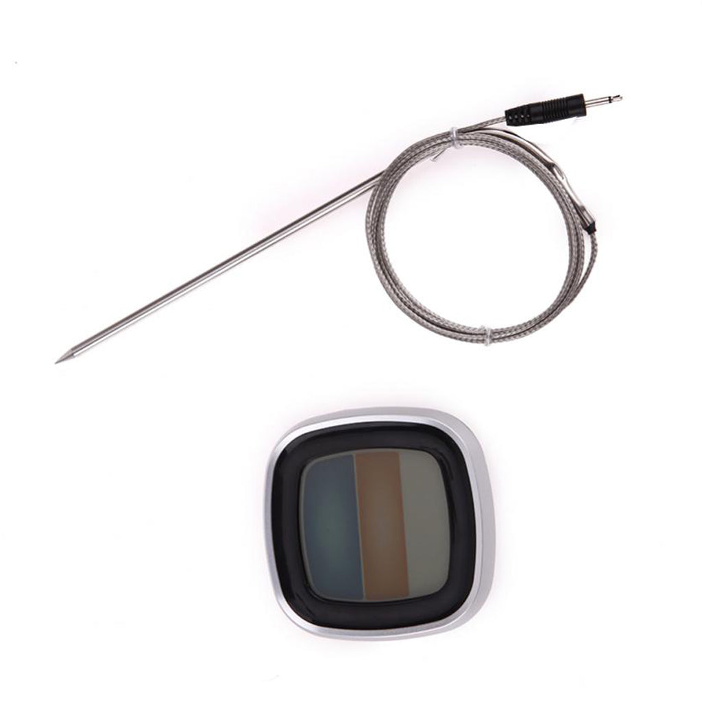 Has two magnets on the back to stick onto Oven or BBQ (not in direct heat).