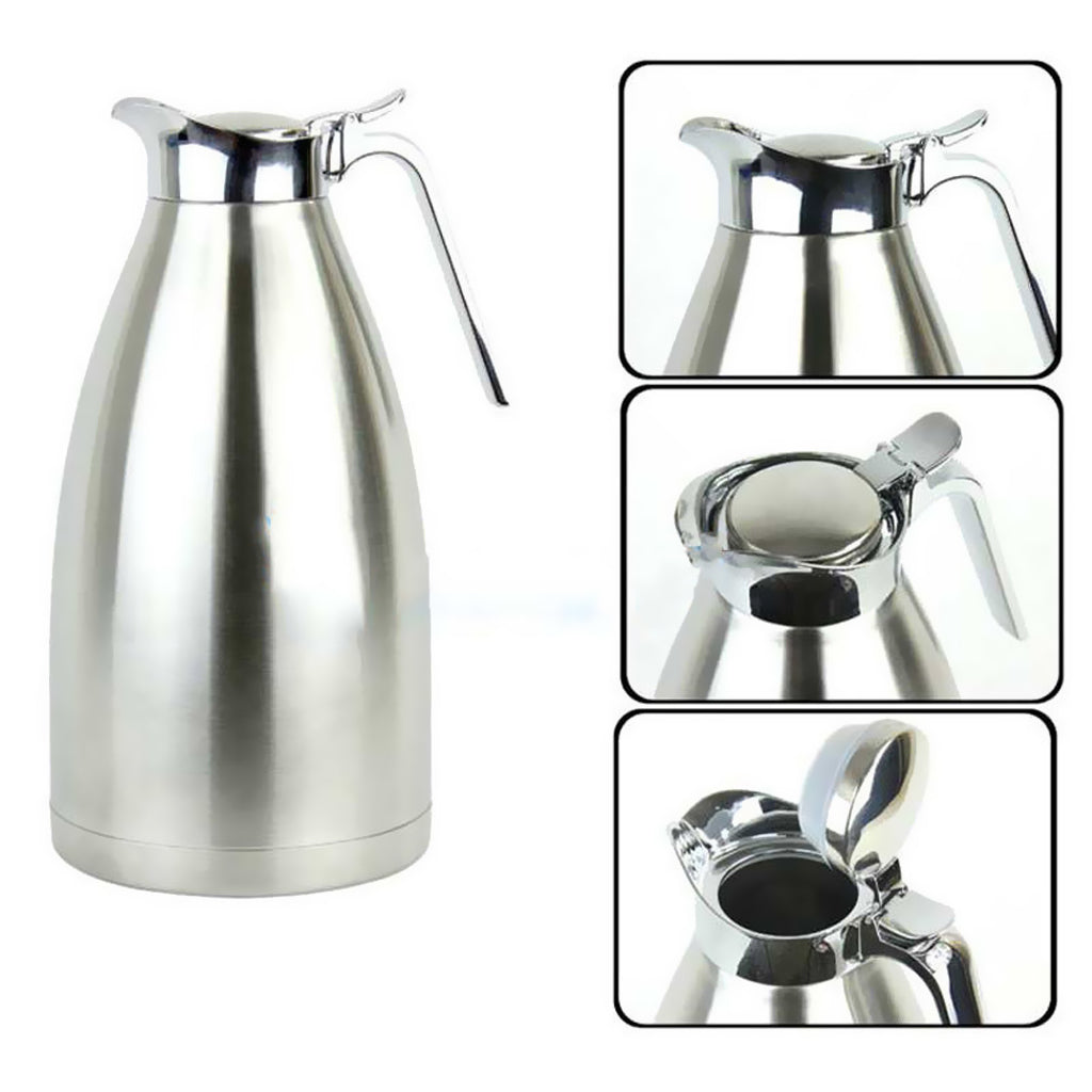 Double Wall Design Non-Toxic Stainless Steel 1.5L Capacity Double Vacuum Insulation Thermal Coffee Carafe Home Water Pot Silver
