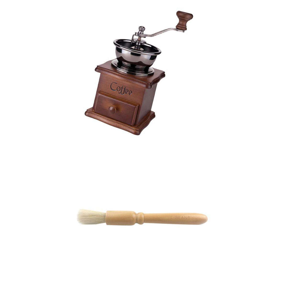 Material: Beech wood base, Stainless steel Grinder; Wooden & Bristles Brush